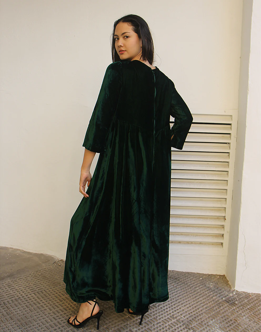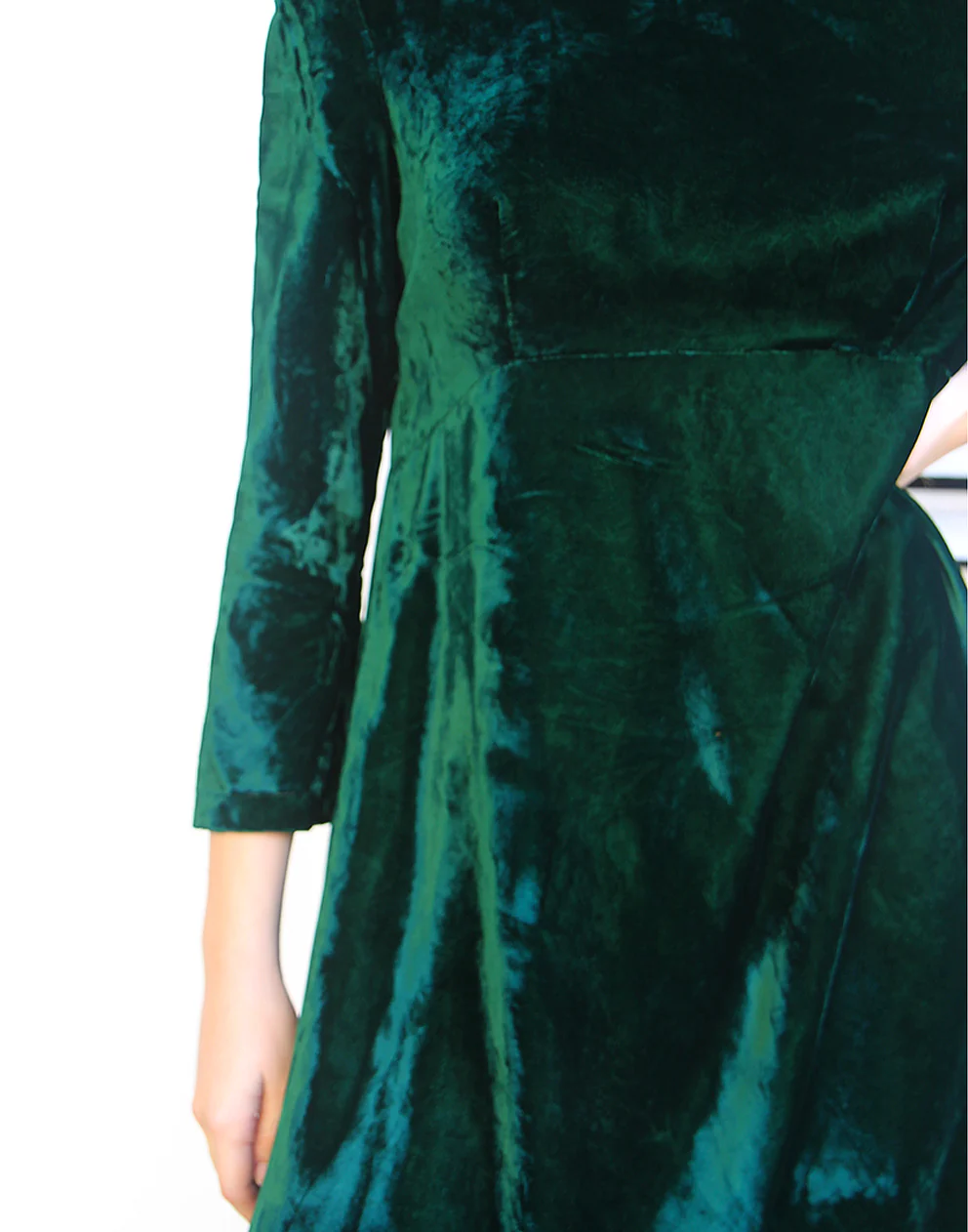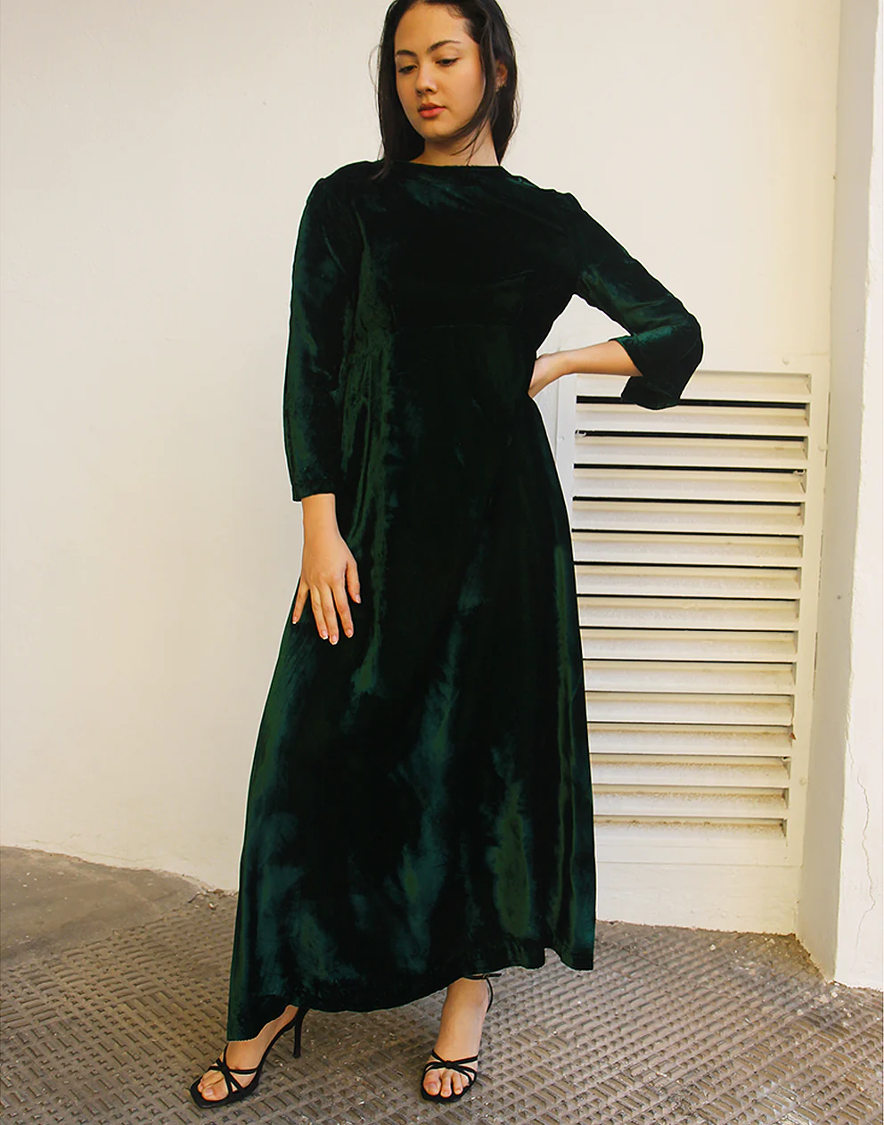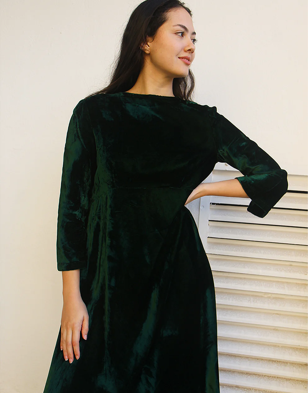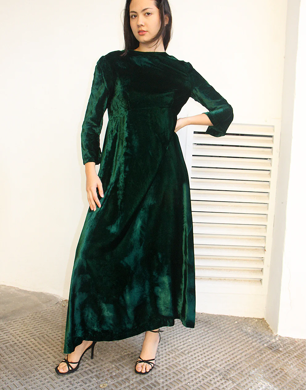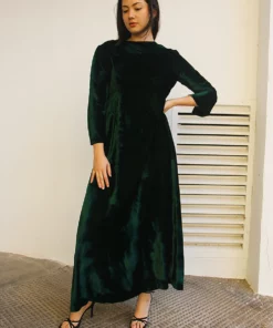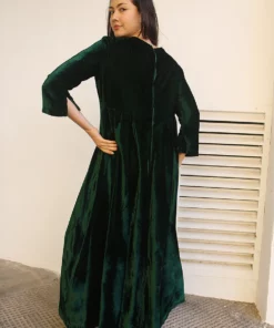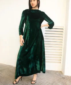 Long velvet dress in dark green.