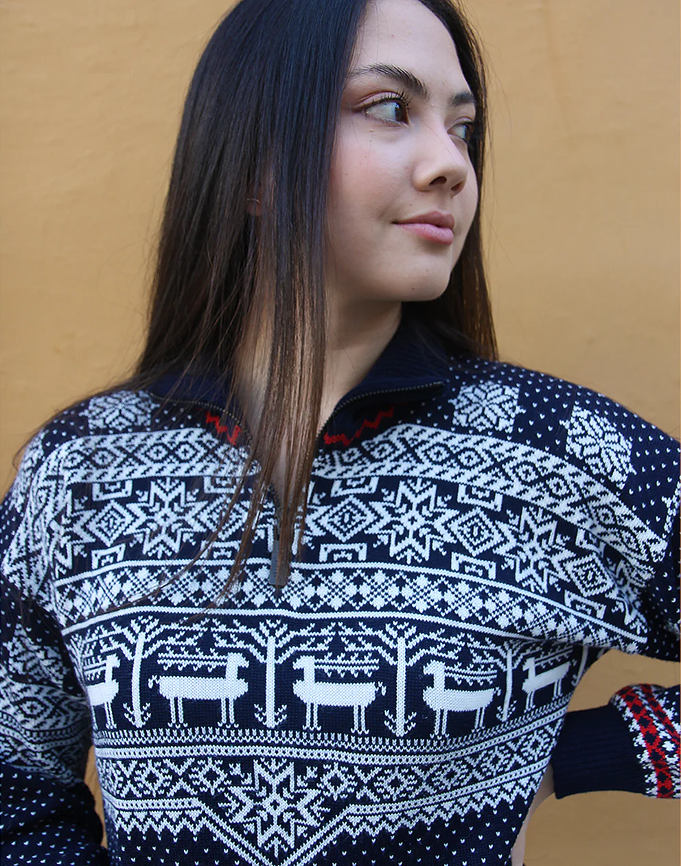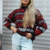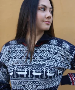 Vintage jumper in navy blue and white fair isle print.
