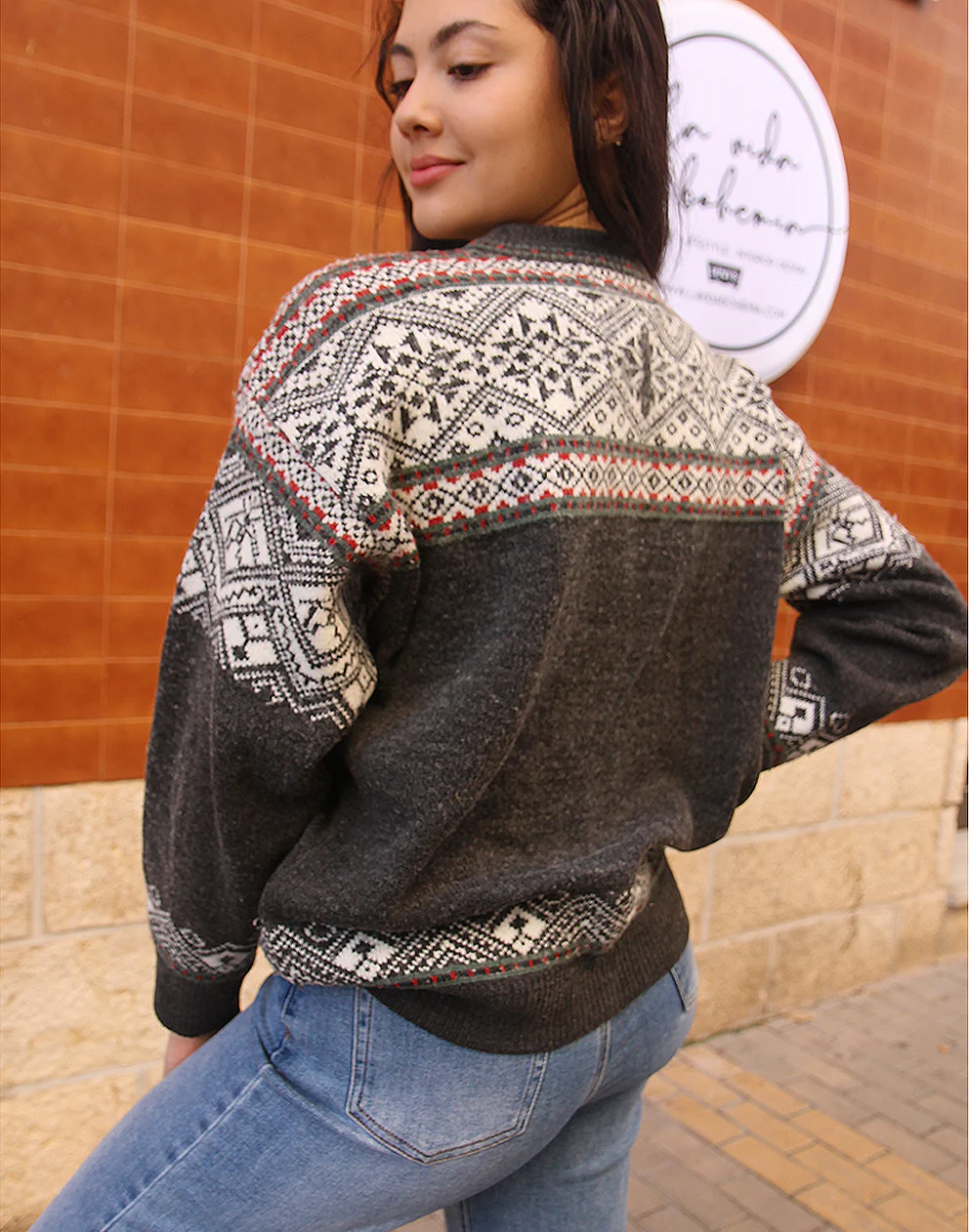 Measurements – 44″(112cm) bust – 20″(51cm) sleeve length – 25″(64cm) length.