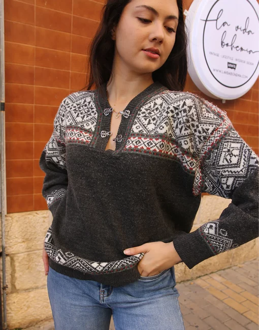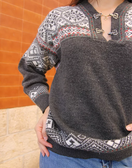 Measurements – 44″(112cm) bust – 20″(51cm) sleeve length – 25″(64cm) length.