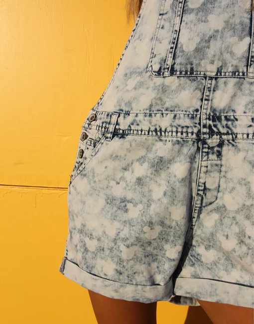 Measurements – 8.5″(22cm) top bib width – 11″(28cm) bib height – 40″(102cm) waist – 44″(112cm) hips – 12.5″(32cm) outer leg.