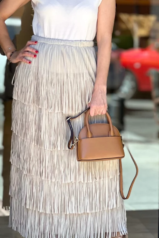 Bolso Mini con asas y tira de bandolera. Cierre de cremallera.
