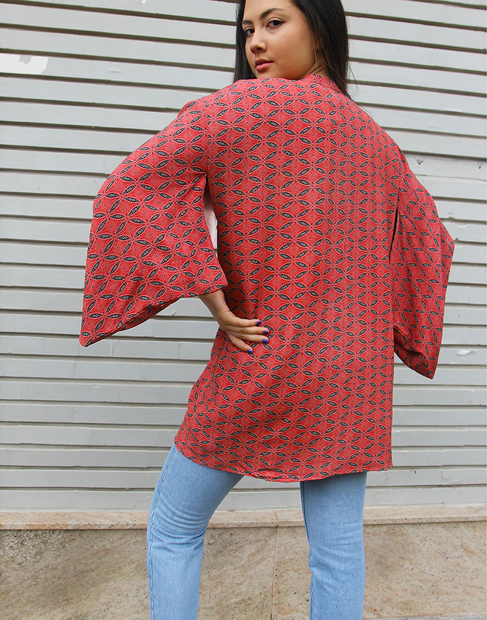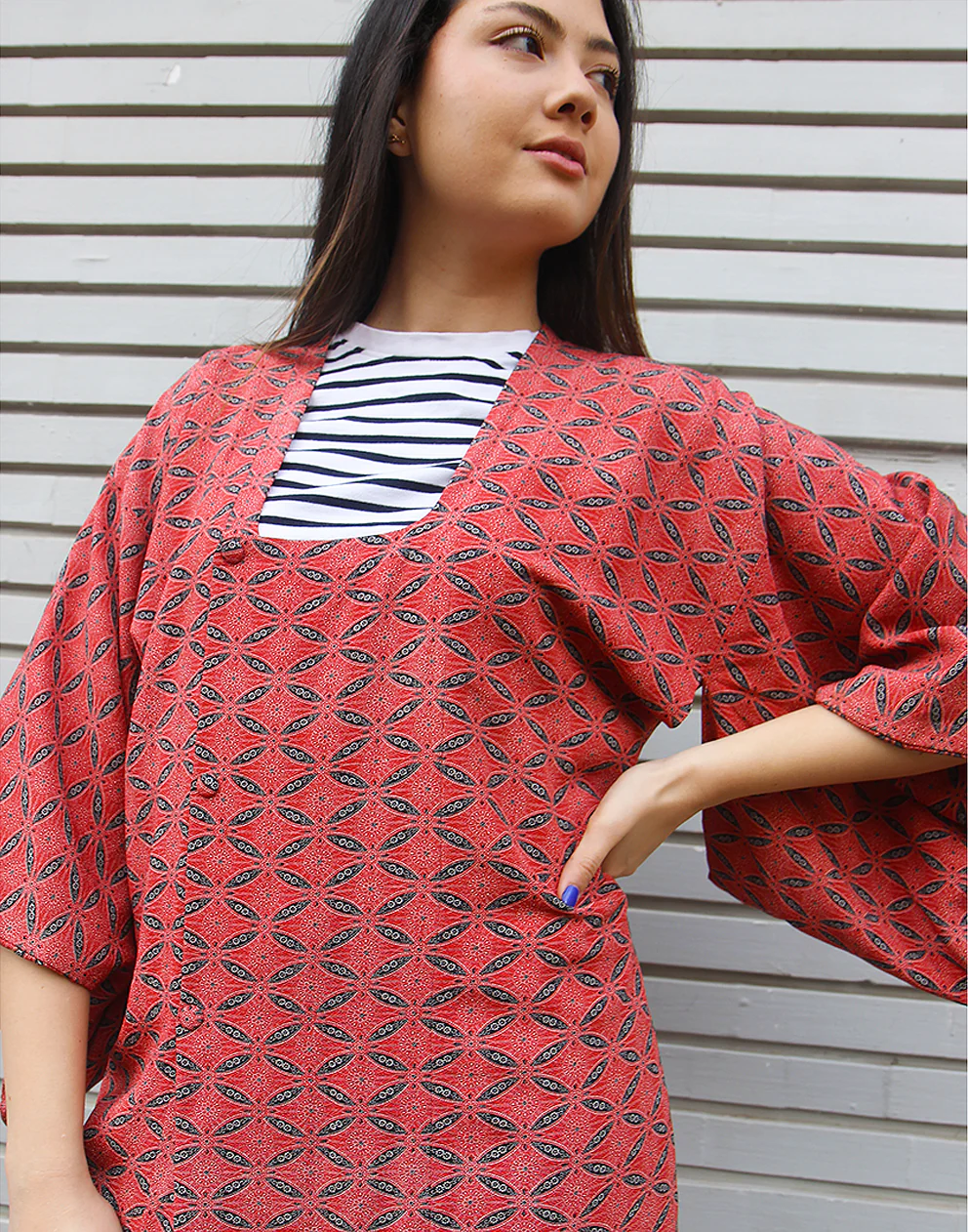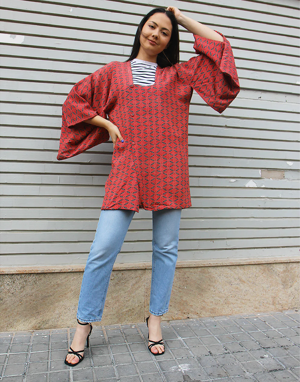 Measurements – 44″(112cm) bust – 13″(33cm) sleeve length – 32″(81cm) length.