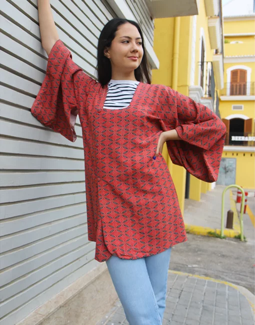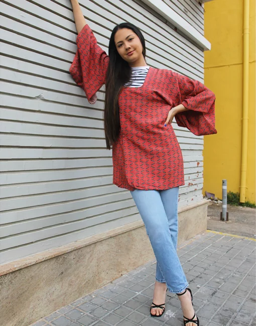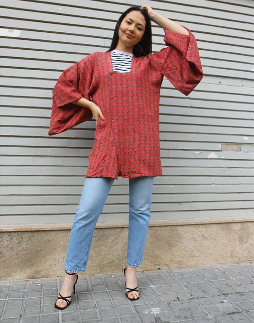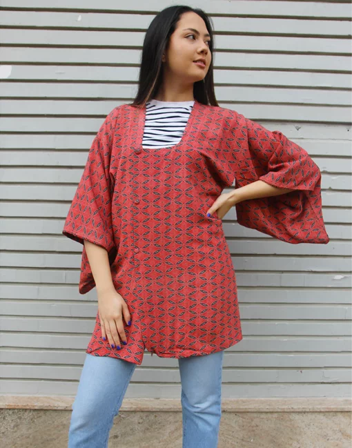 Measurements – 44″(112cm) bust – 13″(33cm) sleeve length – 32″(81cm) length.