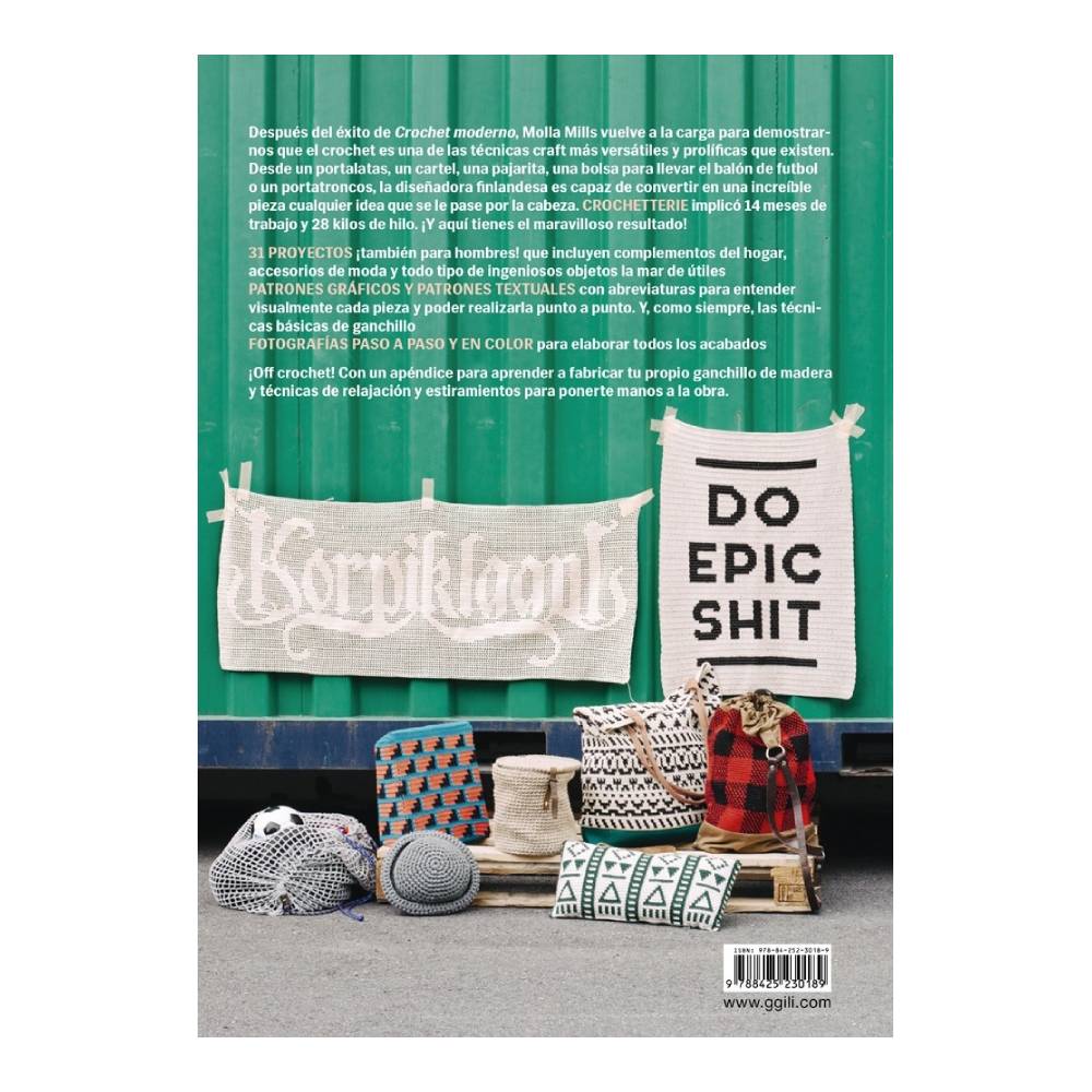 Molla Mills nos vuelve a demostrar que no solo podemos hacer mantas como las de nuestras abuelitas con crochet, también podemos hacer un portalatas, una pajarita, una bolsa para llevar el balón de futbol, un cartel o un portatroncos. 31 proyectos que incluyen complementos del hogar, accesorios de moda y ¡mucho más!.