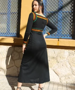 Measurements: 28″/ 71cm bust – 24″ / 61cm waist – 36″ / 91cm hips -23″ / 58cm sleeve length – 54″ / 137cm dress length.