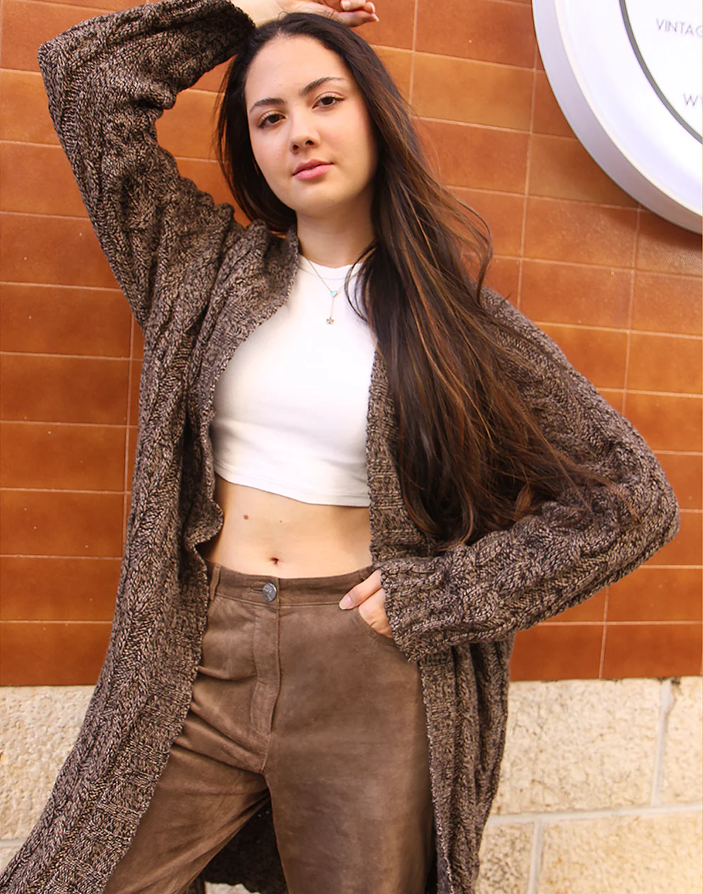 Measurements – 46″(117cm) bust – 25″(64cm) sleeve length – 42″(107cm) length.
