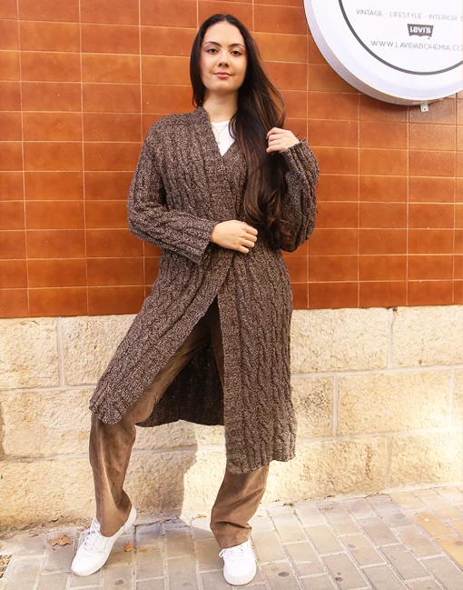 Measurements – 46″(117cm) bust – 25″(64cm) sleeve length – 42″(107cm) length.