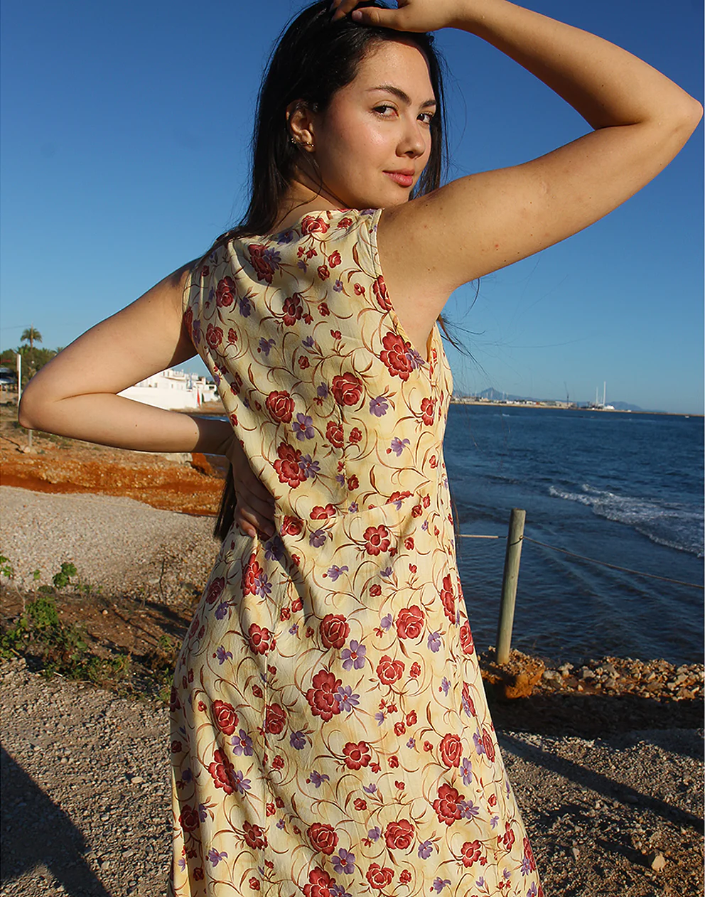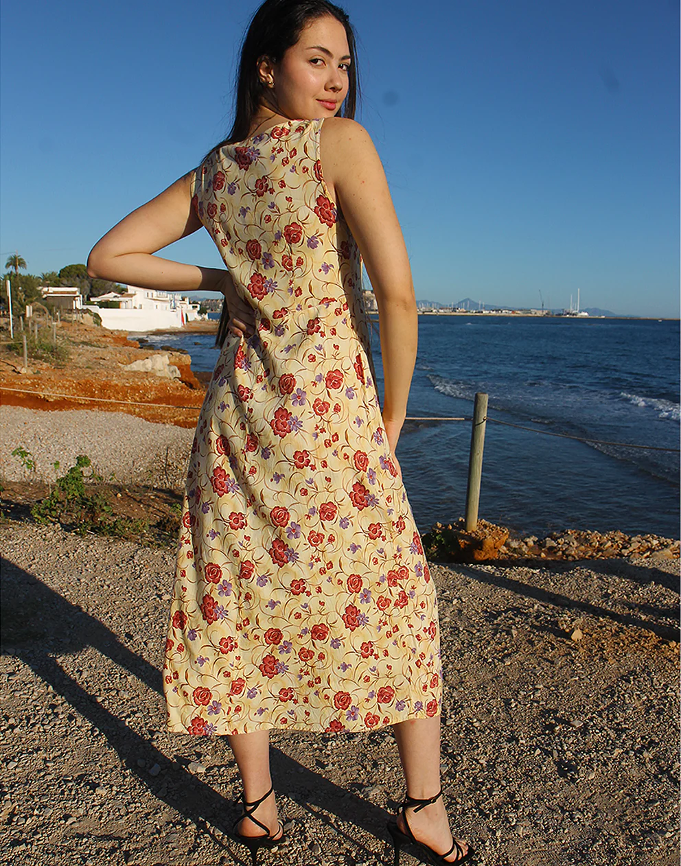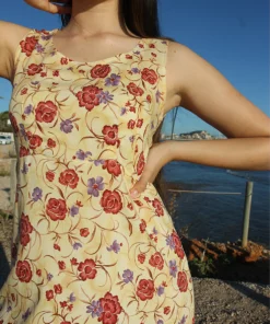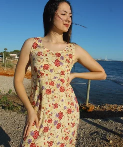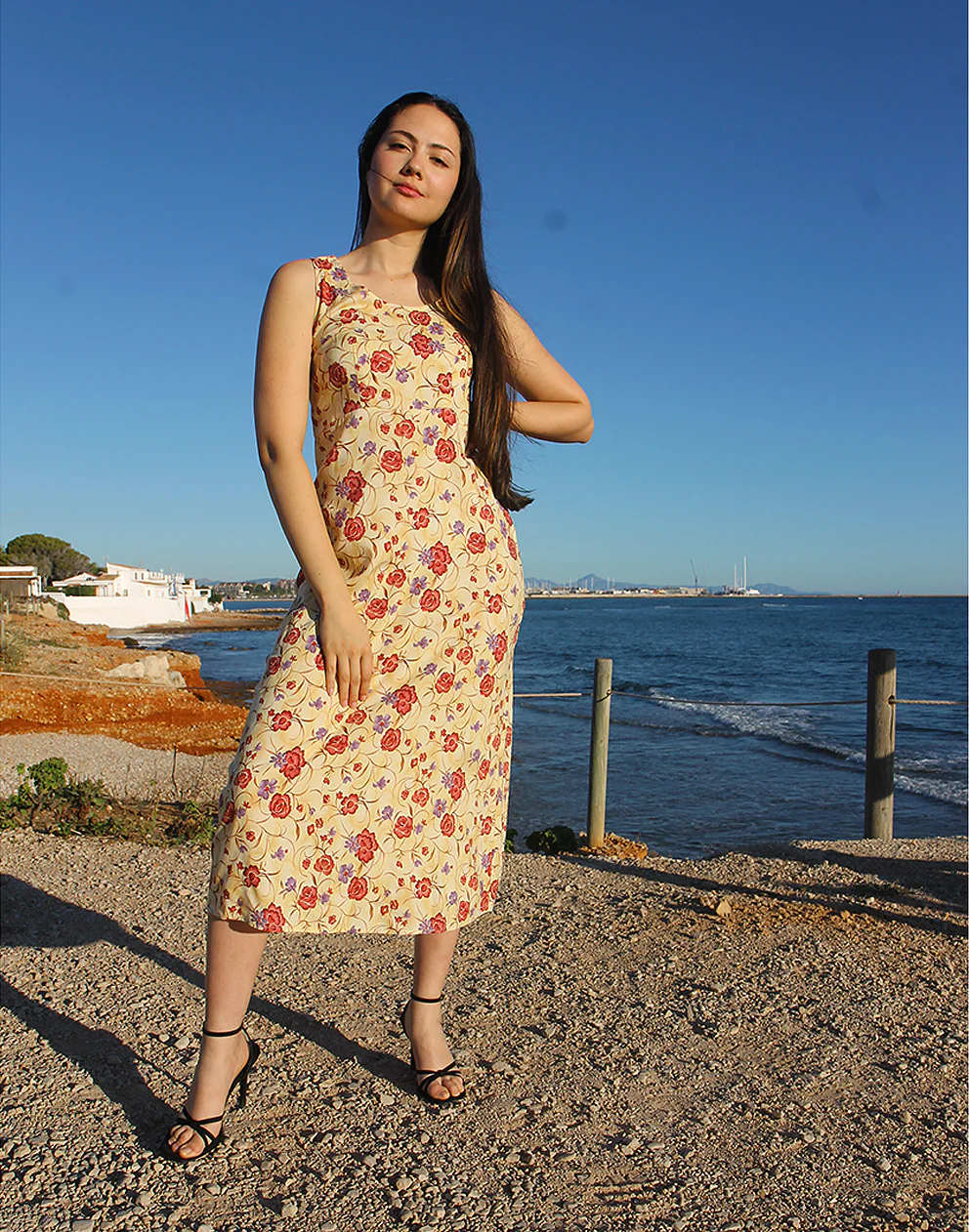 Measurements: 36″/ 91cm bust – 32″ / 81cm waist – 42″ / 107cm hips – 50″ / 127cm dress length.
