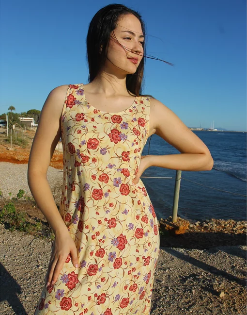 Measurements: 36″/ 91cm bust – 32″ / 81cm waist – 42″ / 107cm hips – 50″ / 127cm dress length.