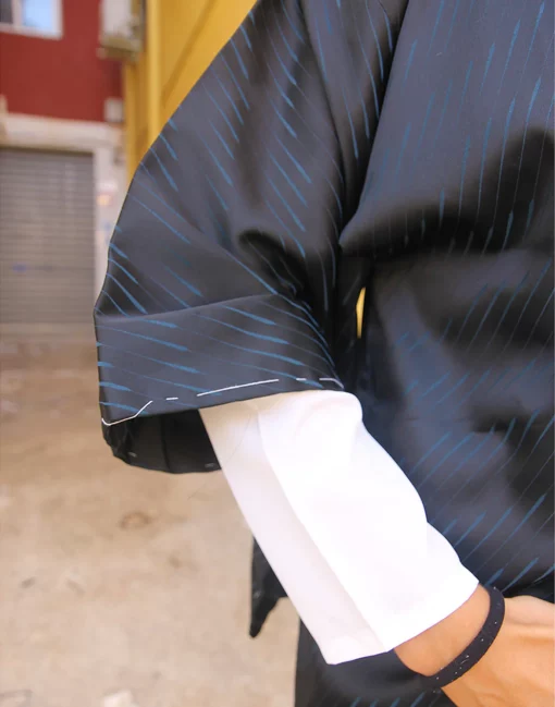 Measurements – 42″(107cm) bust – 13.5″(34cm) sleeve length – 52″(133cm) length.