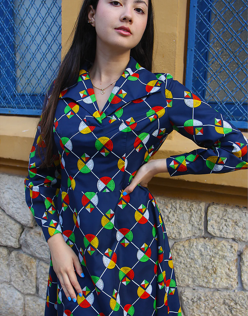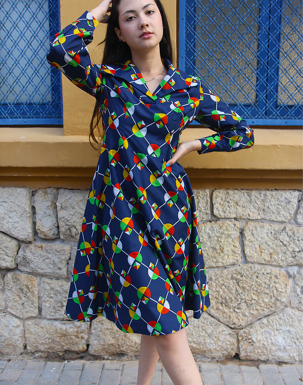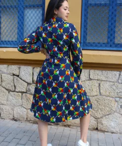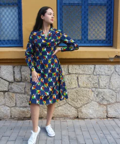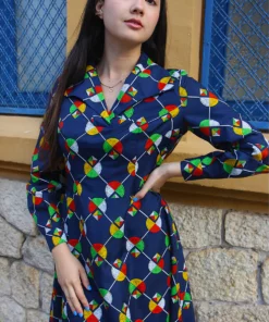 Measurements: 38″/ 97cm bust – 30″ / 76cm waist – 48″ / 122cm hips – 24″ / 61cm sleeve length – 43″ / 109cm dress length.
