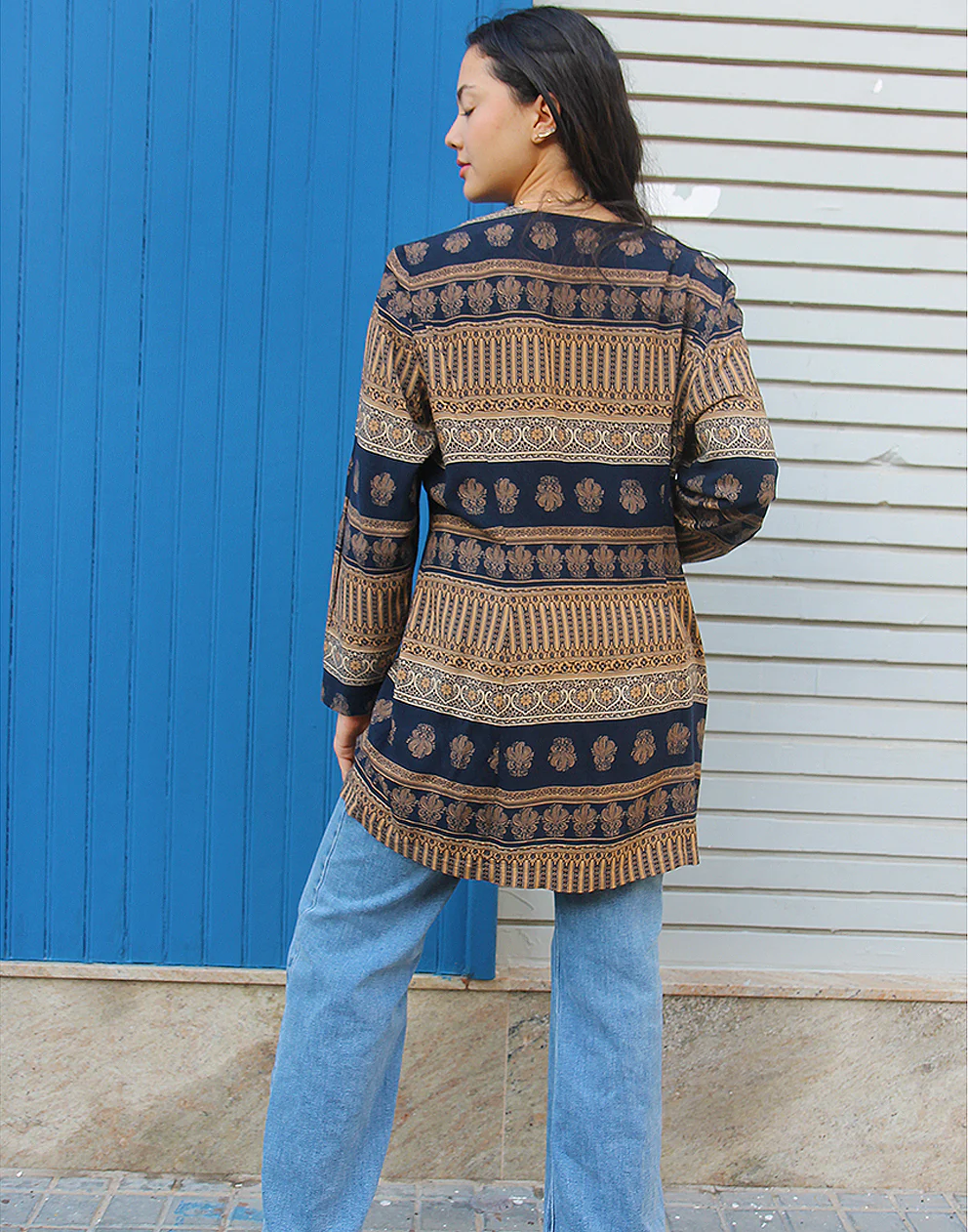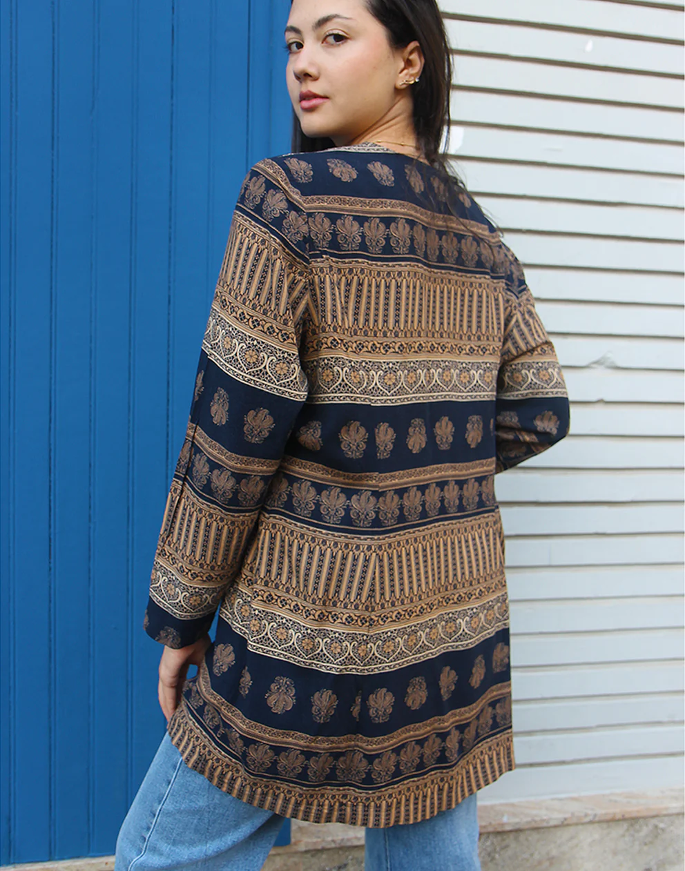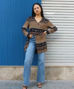 Measurements – 44″(112cm) bust – 25″(64cm) sleeve length – 34″(86cm) jacket length.