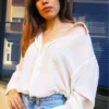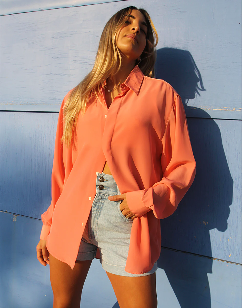 Measurements – 44″(112cm) bust, 25″(63cm) sleeve length, 31″(79cm) shirt length.