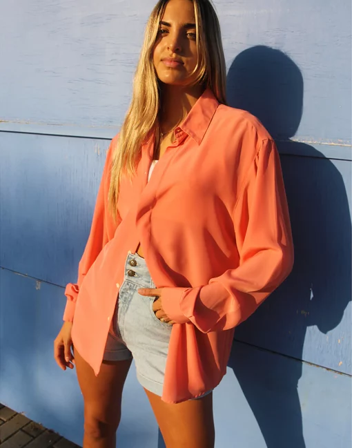 Measurements – 44″(112cm) bust, 25″(63cm) sleeve length, 31″(79cm) shirt length.
