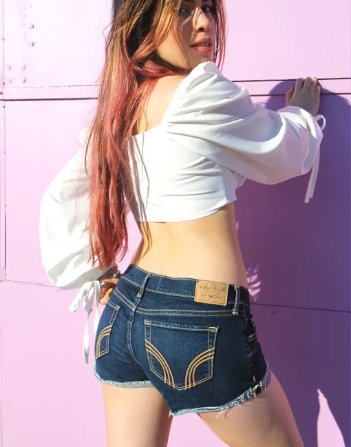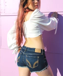 Actual measurements – 26″(66cm) waist – 32″(81cm) hips – outer leg 9″(23cm).