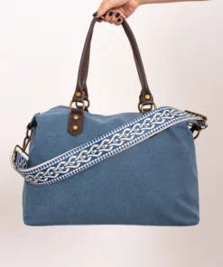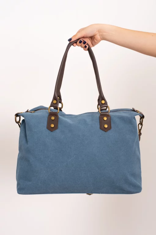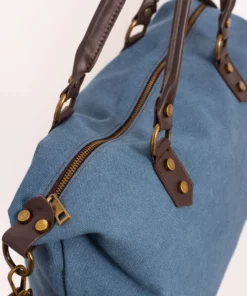 Bolso loneta, con asas hombro de piel. Puedes combinarlas con nuestras cintas de bandolera para darle un toque especial.
