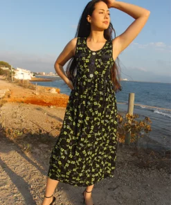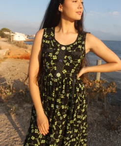 Measurements: 36″/ 91cm bust – 40″ / 102cm waist – 50″ / 127cm hips –52″ / 132cm dress length.