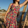 Measurements: 32″/ 81cm bust – 26″ / 66cm waist – 34″ / 86cm hips – 7″ / 18cm sleeve length – 50″ / 127cm dress length.