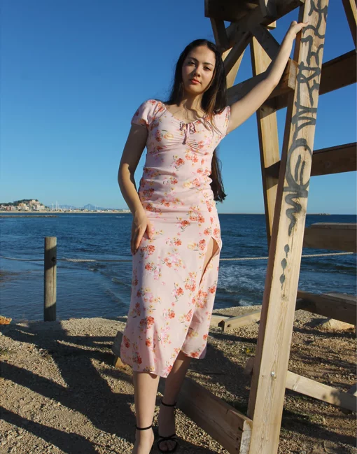 Measurements: 32″/ 81cm bust – 26″ / 66cm waist – 34″ / 86cm hips – 7″ / 18cm sleeve length – 50″ / 127cm dress length.