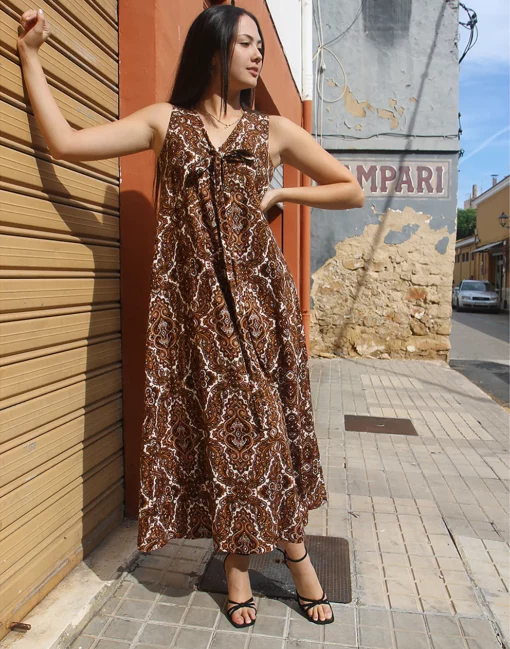 Measurements: 36″/ 91cm bust – 40″ / 102cm waist – 50″ / 127cm hips –52″ / 132cm dress length.