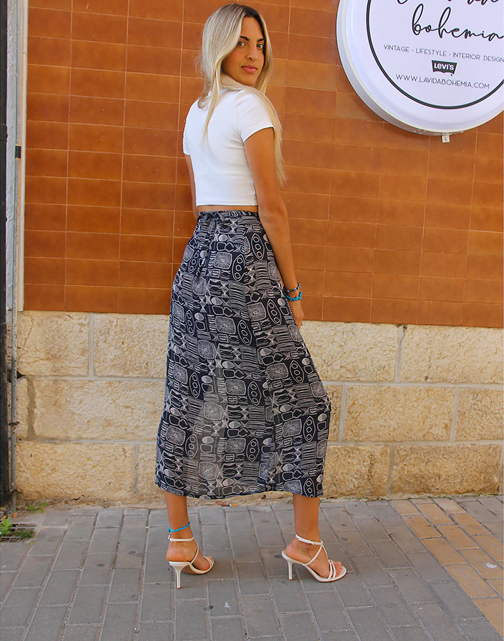Measurements: 32″ / 81cm waist – 40″ / 102cm hips – 35″ / 89cm skirt length.