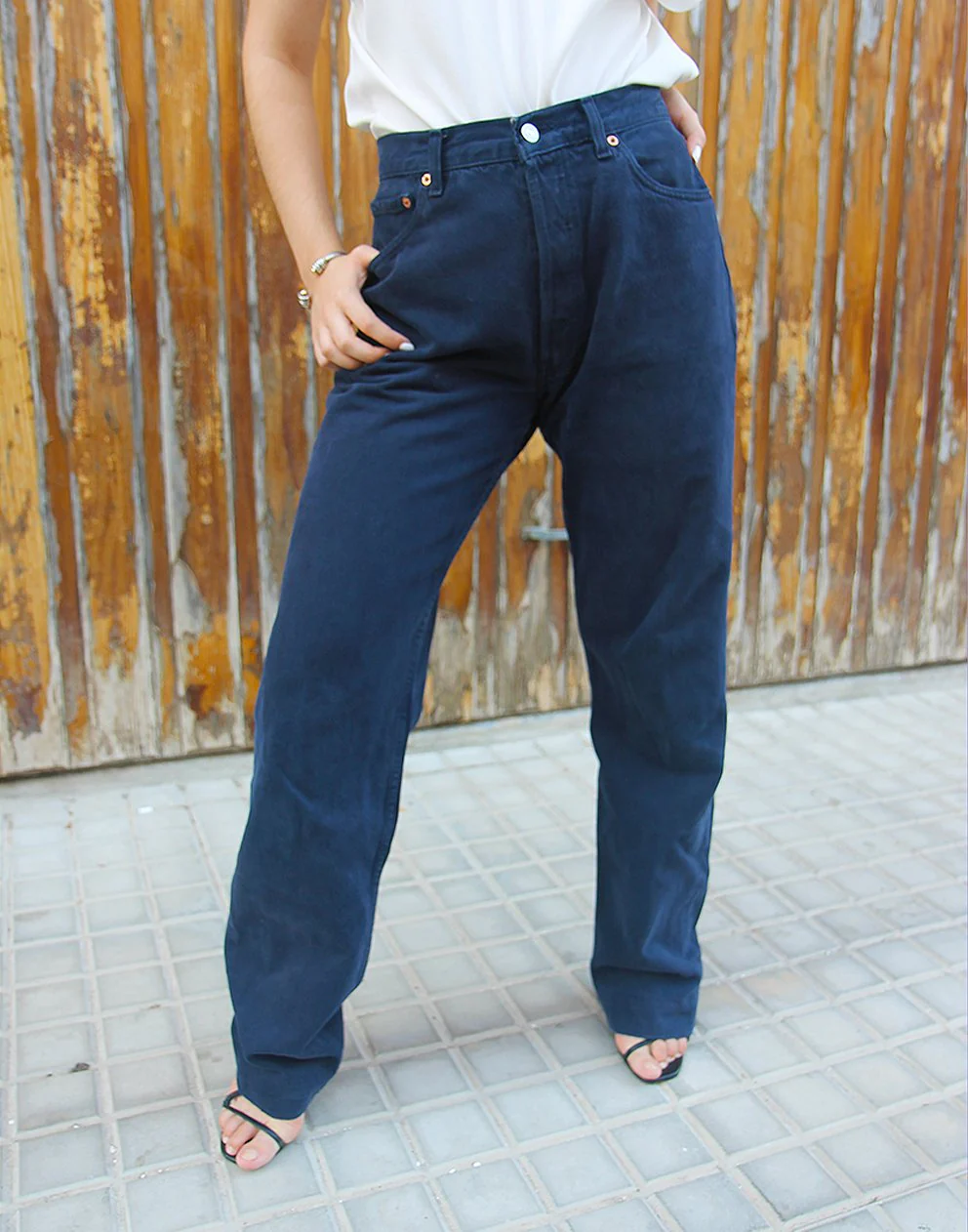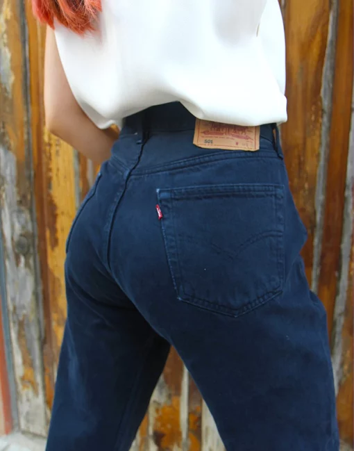 Original Levi’s 501 Navy Blue Denim High Rise Tall Jeans 25″/ 63cm Waist
