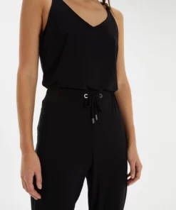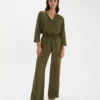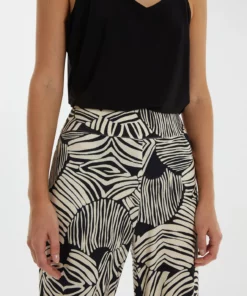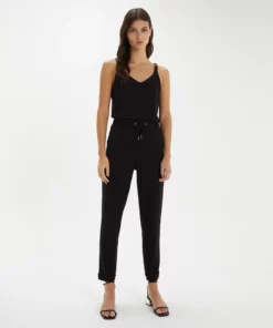 Pantalón recto ancho con cintura elástica en la parte de atrás y bolsillos en los lados