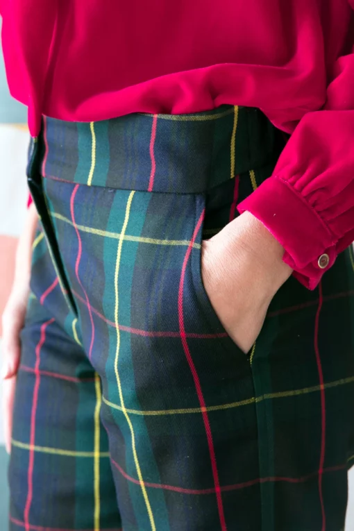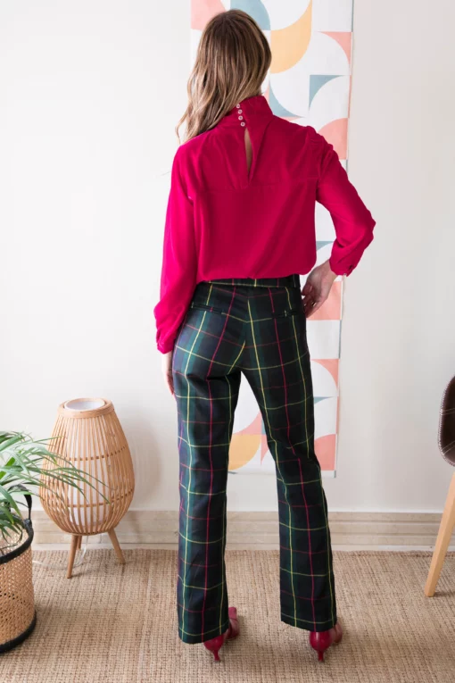 – Cierre central con doble botón, cintura ancha elástica en la espalda.