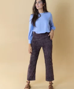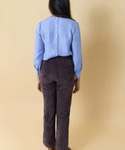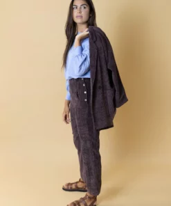 Pantalón recto realizado en pana de mezcla en color marrón chocolate.