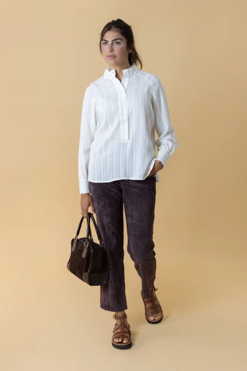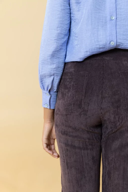 Pantalón recto realizado en pana de mezcla en color marrón chocolate.