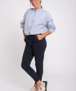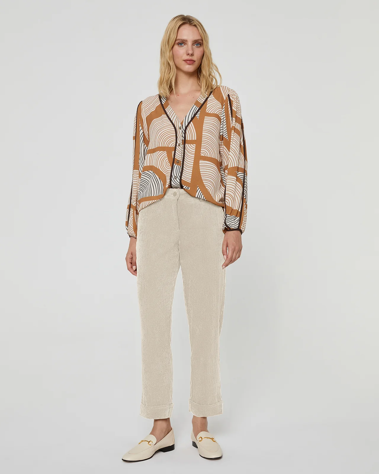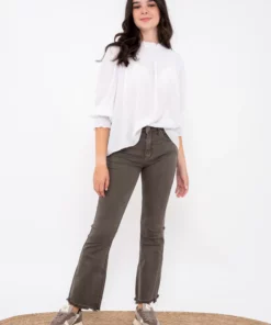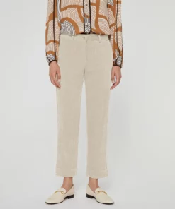 Pantalón de pana , corte recto . Tobillero con vuelta en el bajo. Bolsillos tipo francés en los lados. Lleva goma en la parte de atrás de la cintura para darle mayor comodidad. Cierre con botón y cremallera. Combínalo con la Blazer del mismo tejido para obtener un look moderno y casual