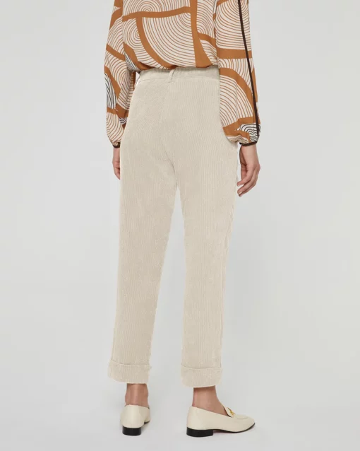 Pantalón de pana , corte recto . Tobillero con vuelta en el bajo. Bolsillos tipo francés en los lados. Lleva goma en la parte de atrás de la cintura para darle mayor comodidad. Cierre con botón y cremallera. Combínalo con la Blazer del mismo tejido para obtener un look moderno y casual