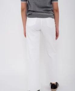 Pantalón de punto de canalé de tiro medio. Goma en la cintura, cierre con cremallera y botón. Bolsillos en los lados. Si lo combinamos con el jersey del mismo punto obtenemos un conjunto cómodo, moderno y con el estilo.