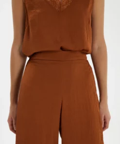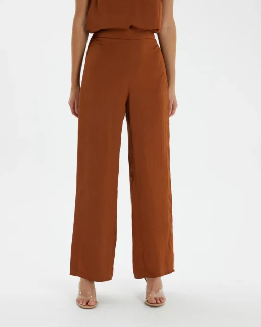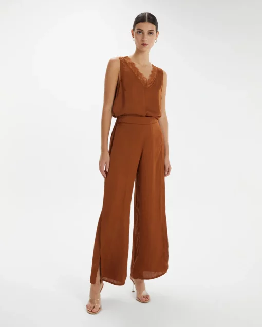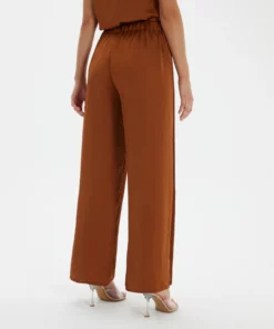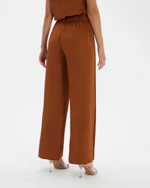 Pantalón de raso ancho con aberturas en abajo y cinturilla elástica atrás