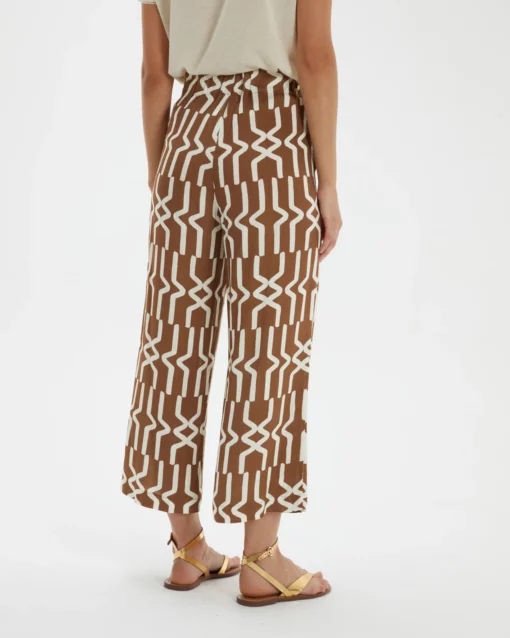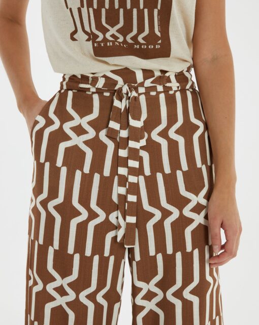 Pantalón ancho, tobillero con bolsillos en los lados, cinturón de la misma tela y cinturilla elástica