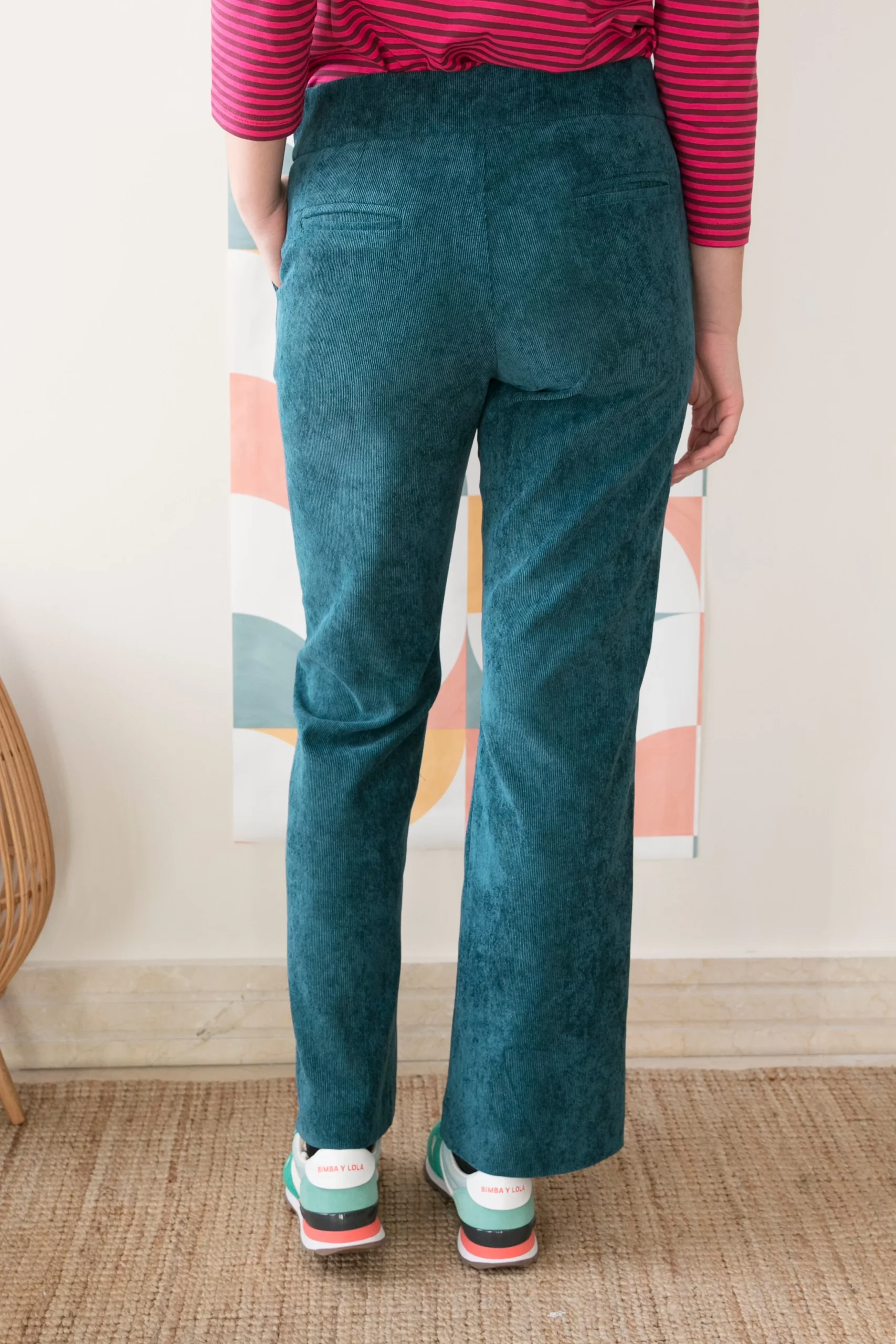Pantalón en color verde realizado en un tejido de pana con elastano.