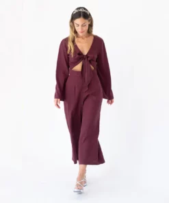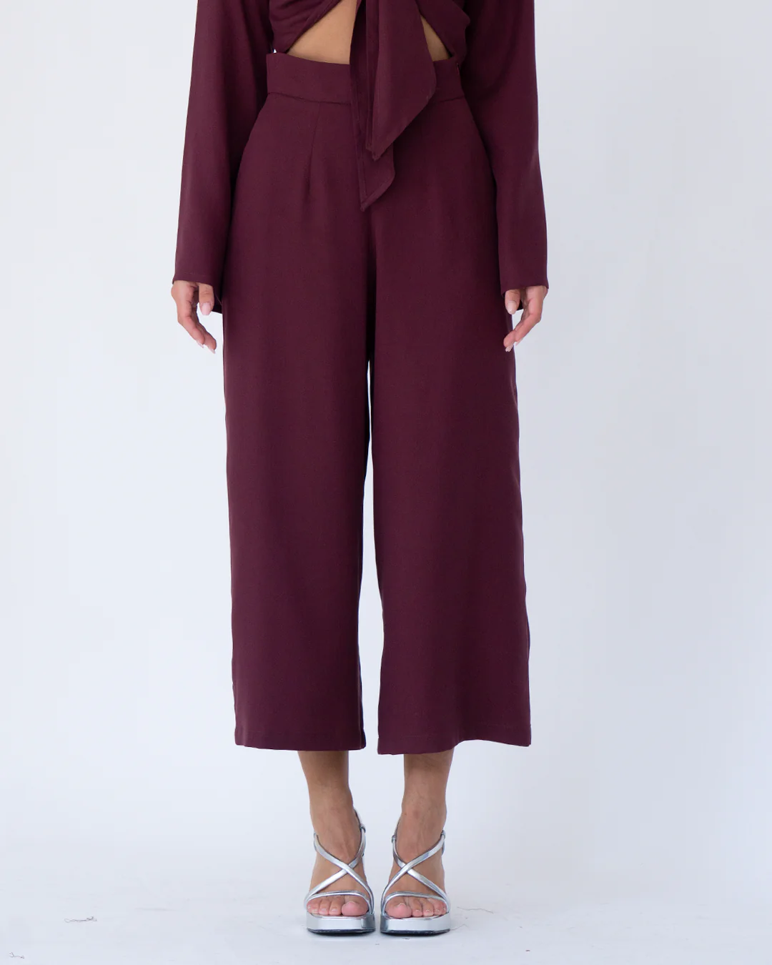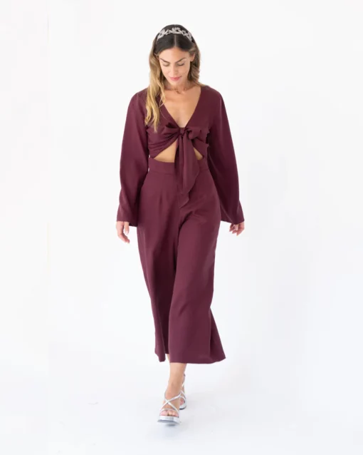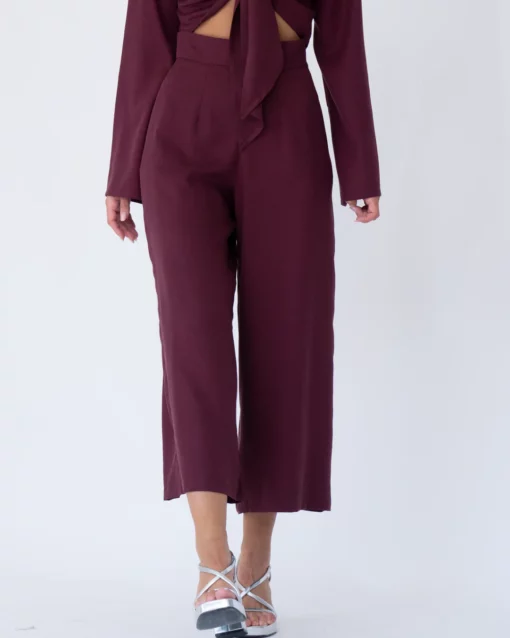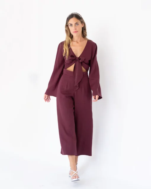 Pantalón midi, de pata ancha. Tiro muy alto. Bolsillos laterales. Cinturilla de 5cm.