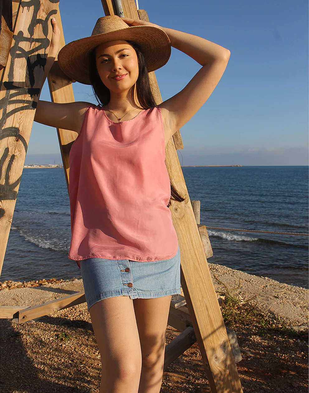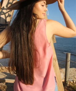 Vest top in pink pure silk.