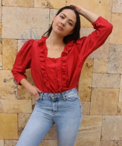 Measurements- 42″(107cm) bust – 20″(51cm) sleeve length – 23″(59cm) top length.