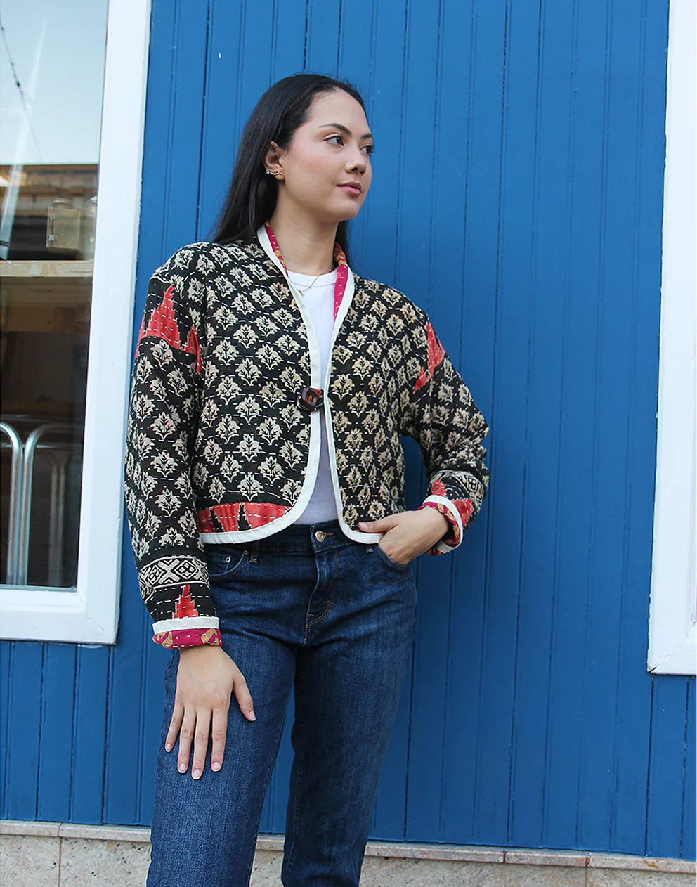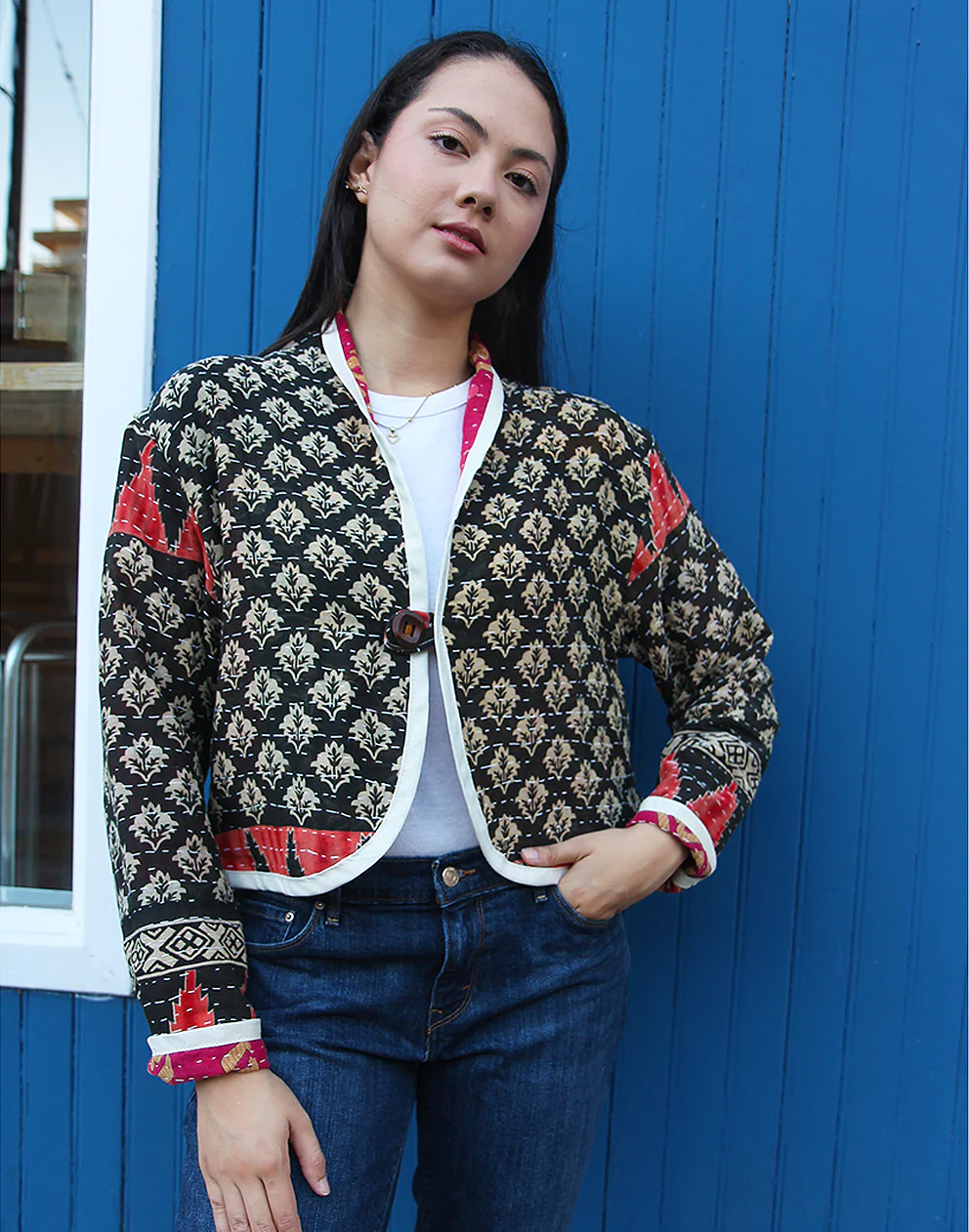 Measurements: 46″/ 117cm bust – 22″ / 56cm sleeve length – 20″ / 51cm jacket length