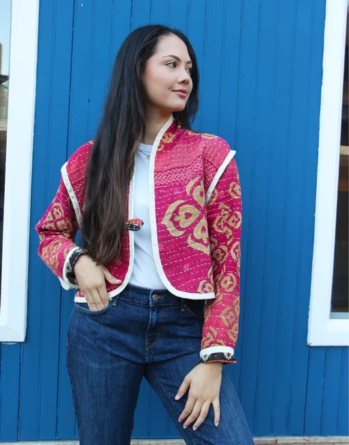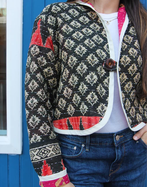 Measurements: 46″/ 117cm bust – 22″ / 56cm sleeve length – 20″ / 51cm jacket length
