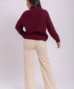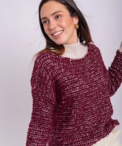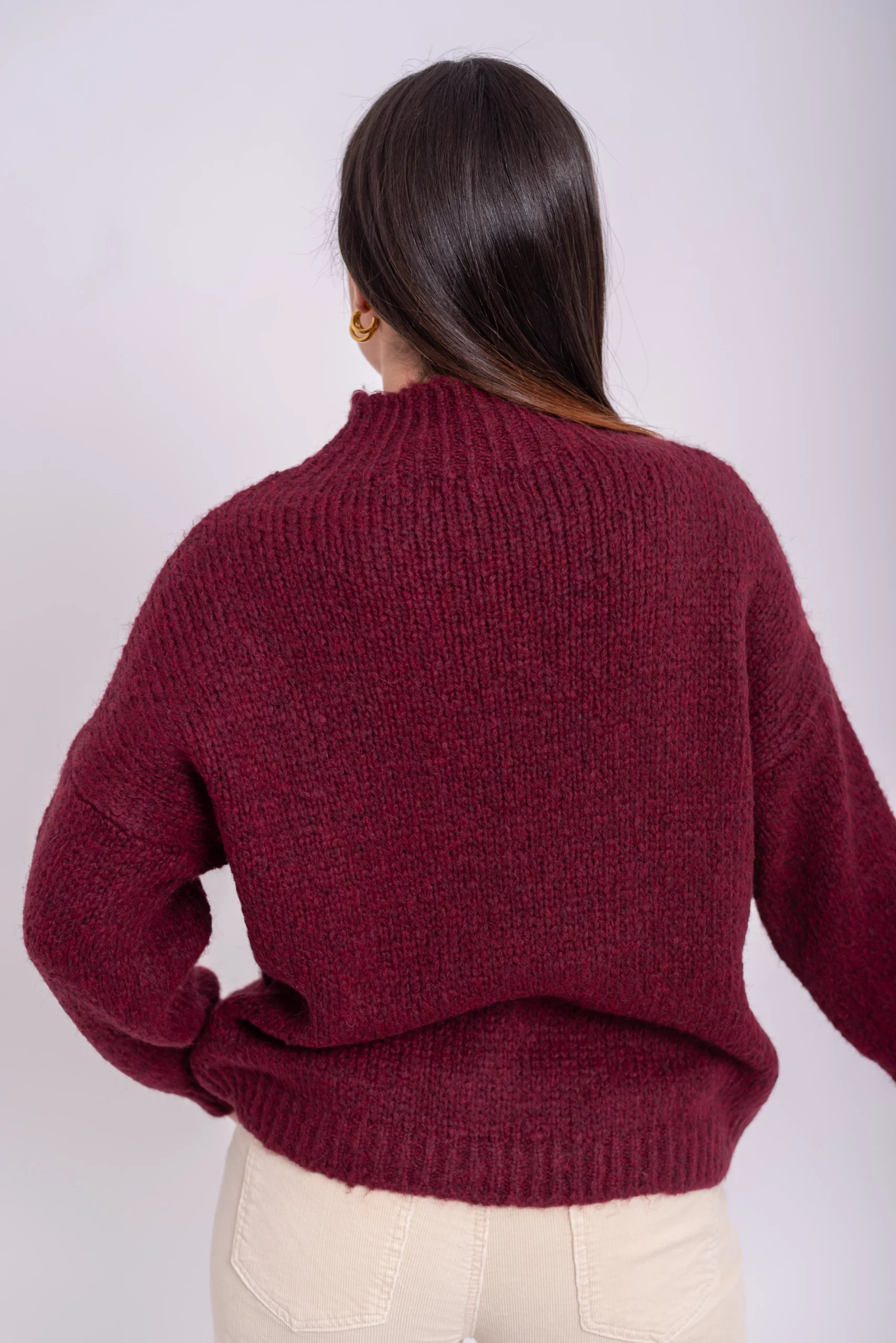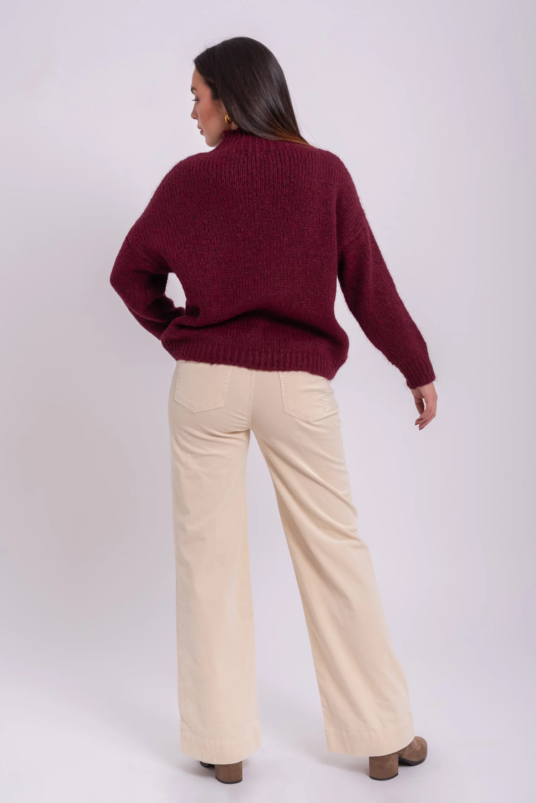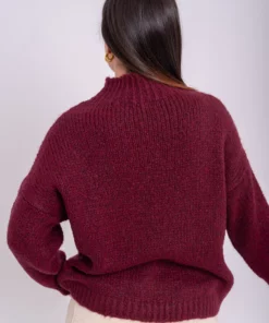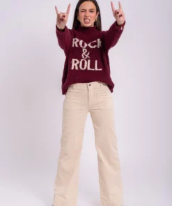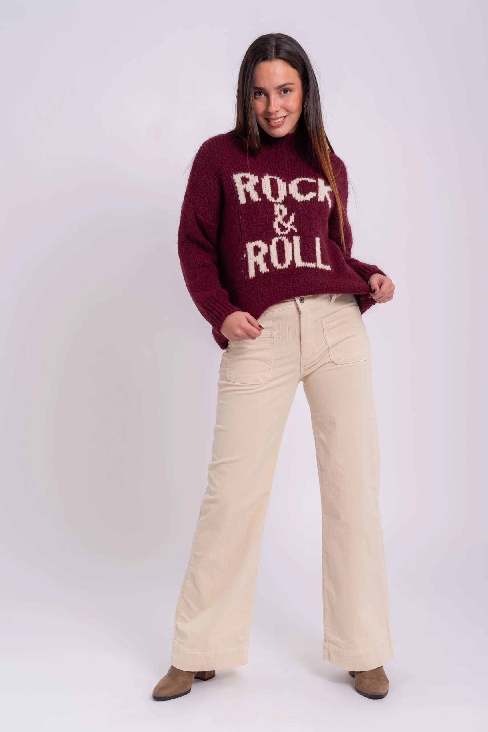 Jersey punto grueso con cuello chimenea. Leyenda Rock and Roll tejido en tono a contraste. Corte amplio y comodo.