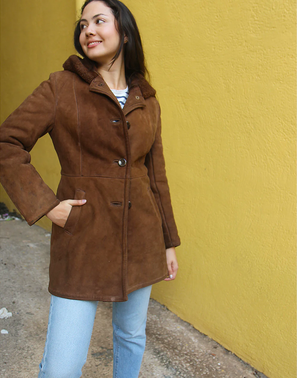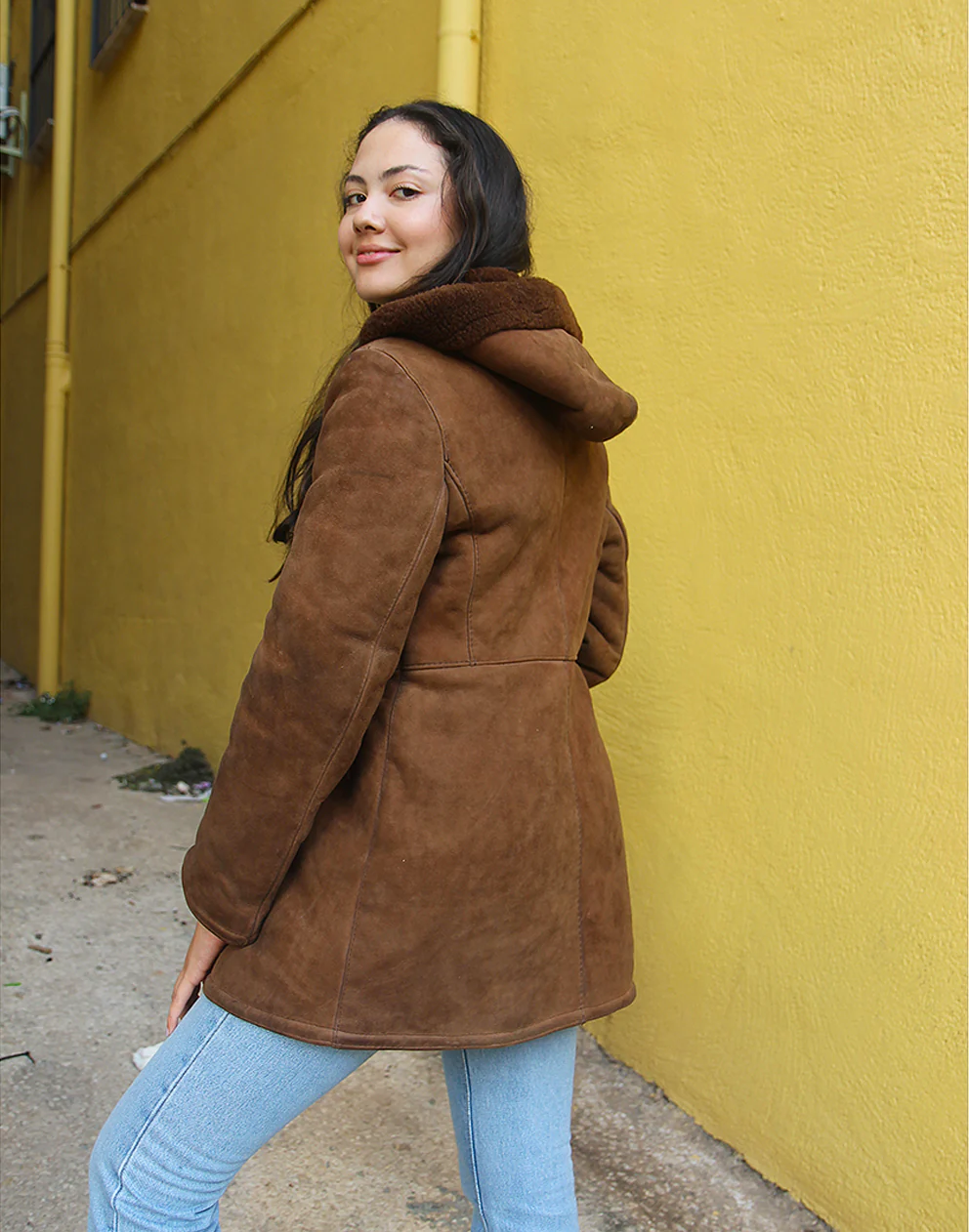 Full shearling lining in a faux fur, including to sleeves and hood.