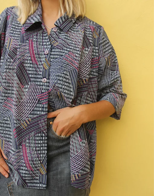 Measurements – 50″(127cm) bust – 16″(41cm) sleeve length – 28″(71cm) jacket length.