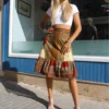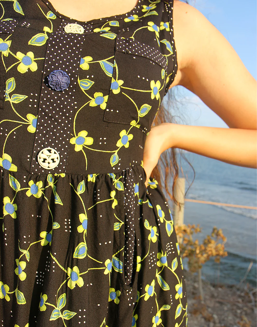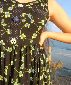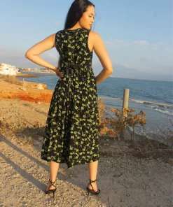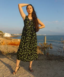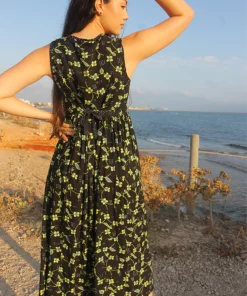 Measurements: 38″/ 81cm bust – 34″ / 66cm waist – 58″ / 91cm hips – 49″ / 124cm dress length.