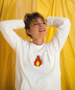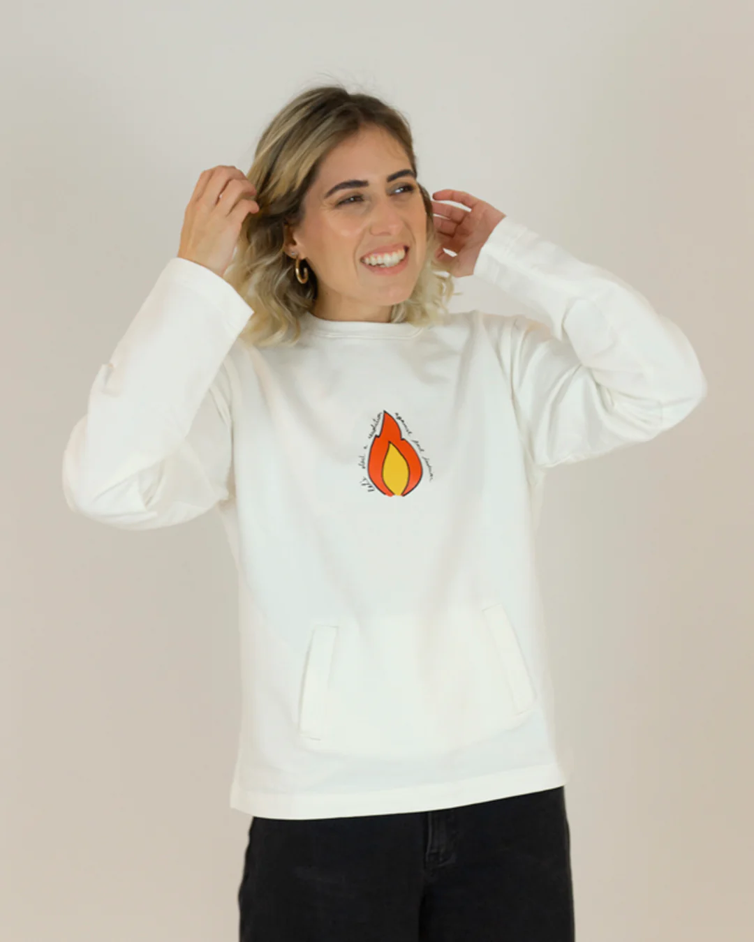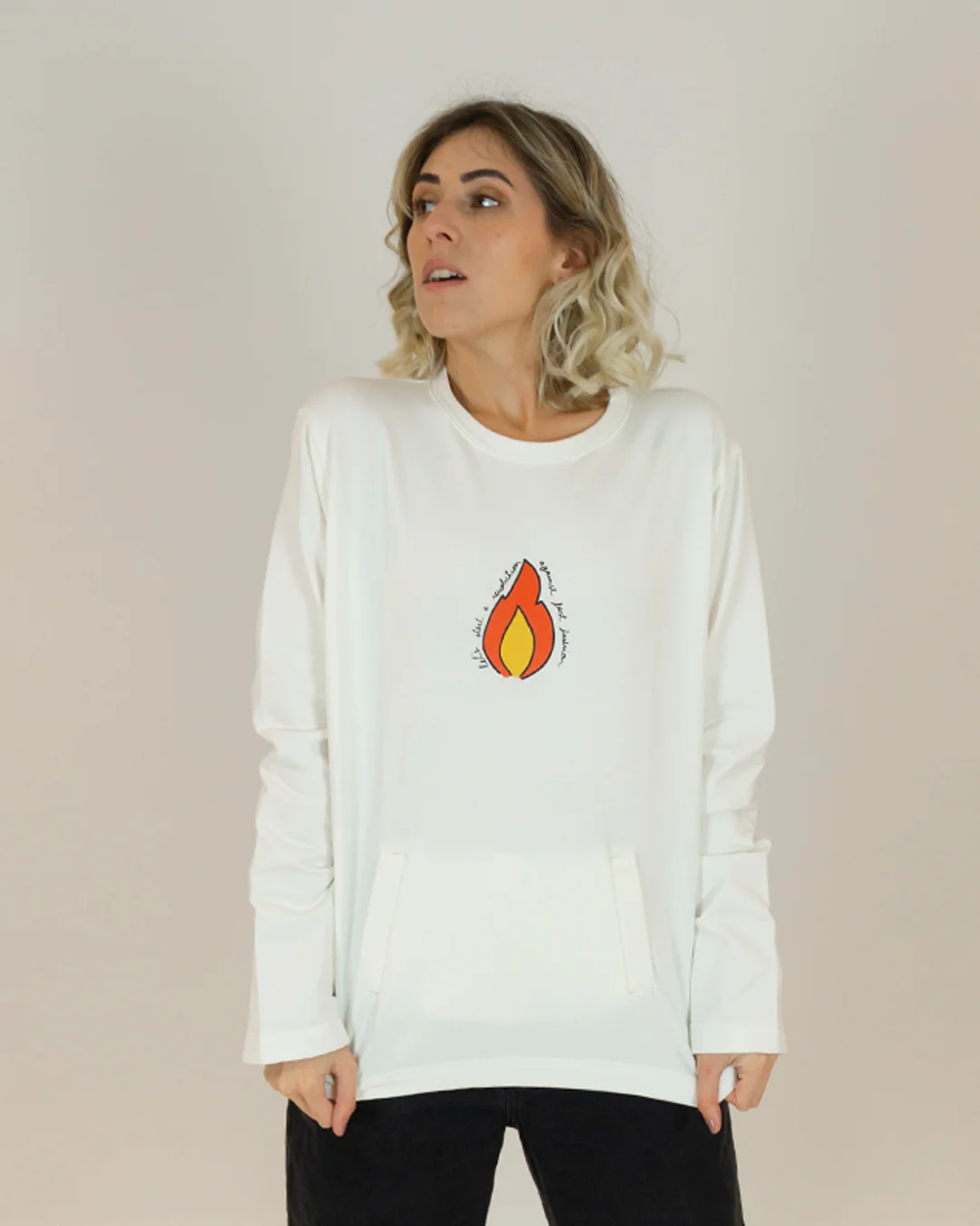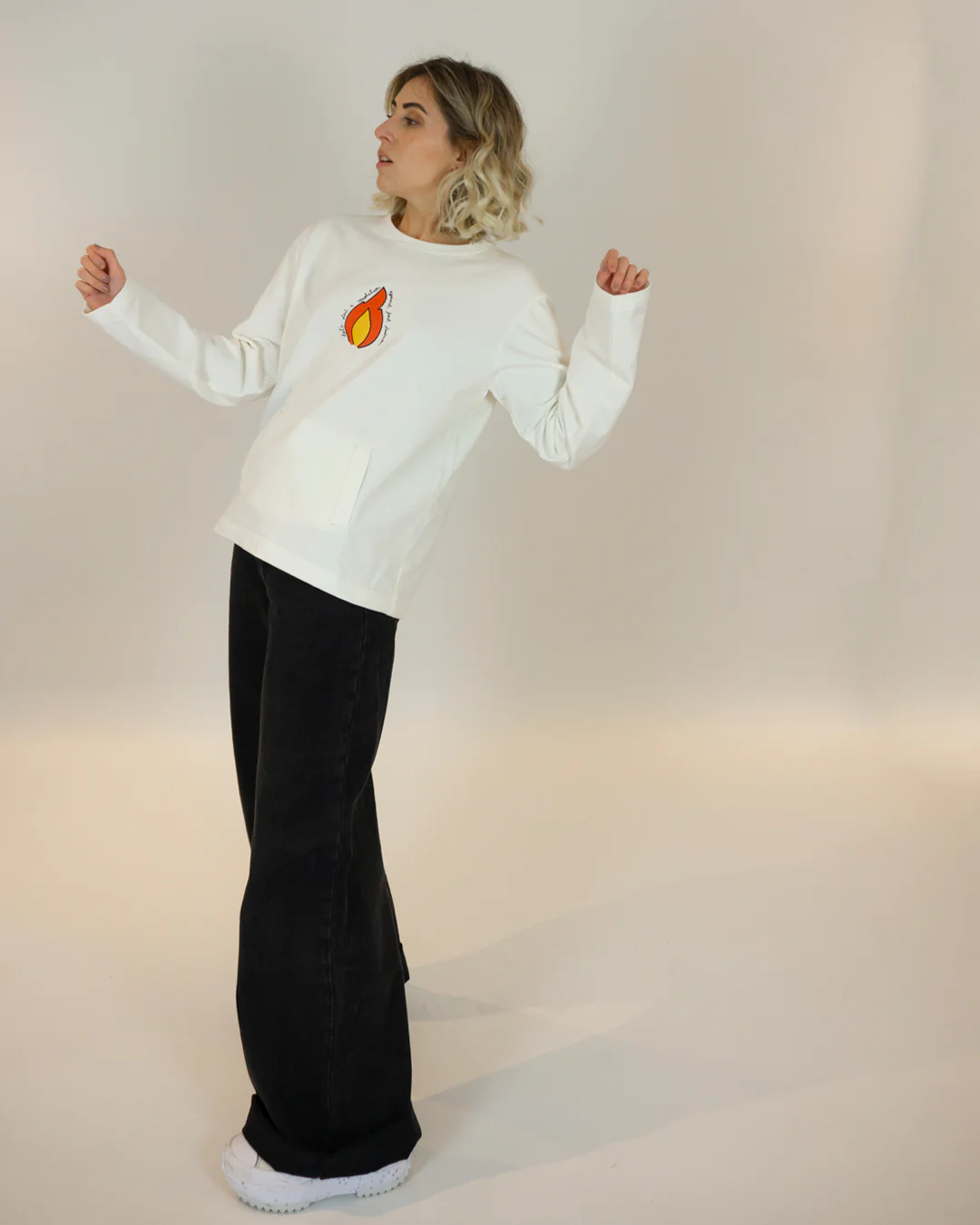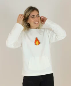 Sudadera unisex de manga larga y cuello a la caja. Bolsillo en el delantero. Llega hasta la cadera.