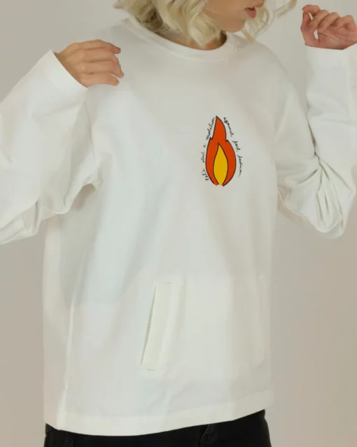 Sudadera unisex de manga larga y cuello a la caja. Bolsillo en el delantero. Llega hasta la cadera.