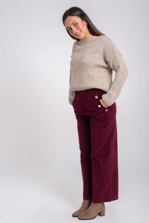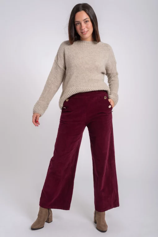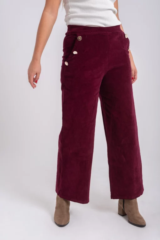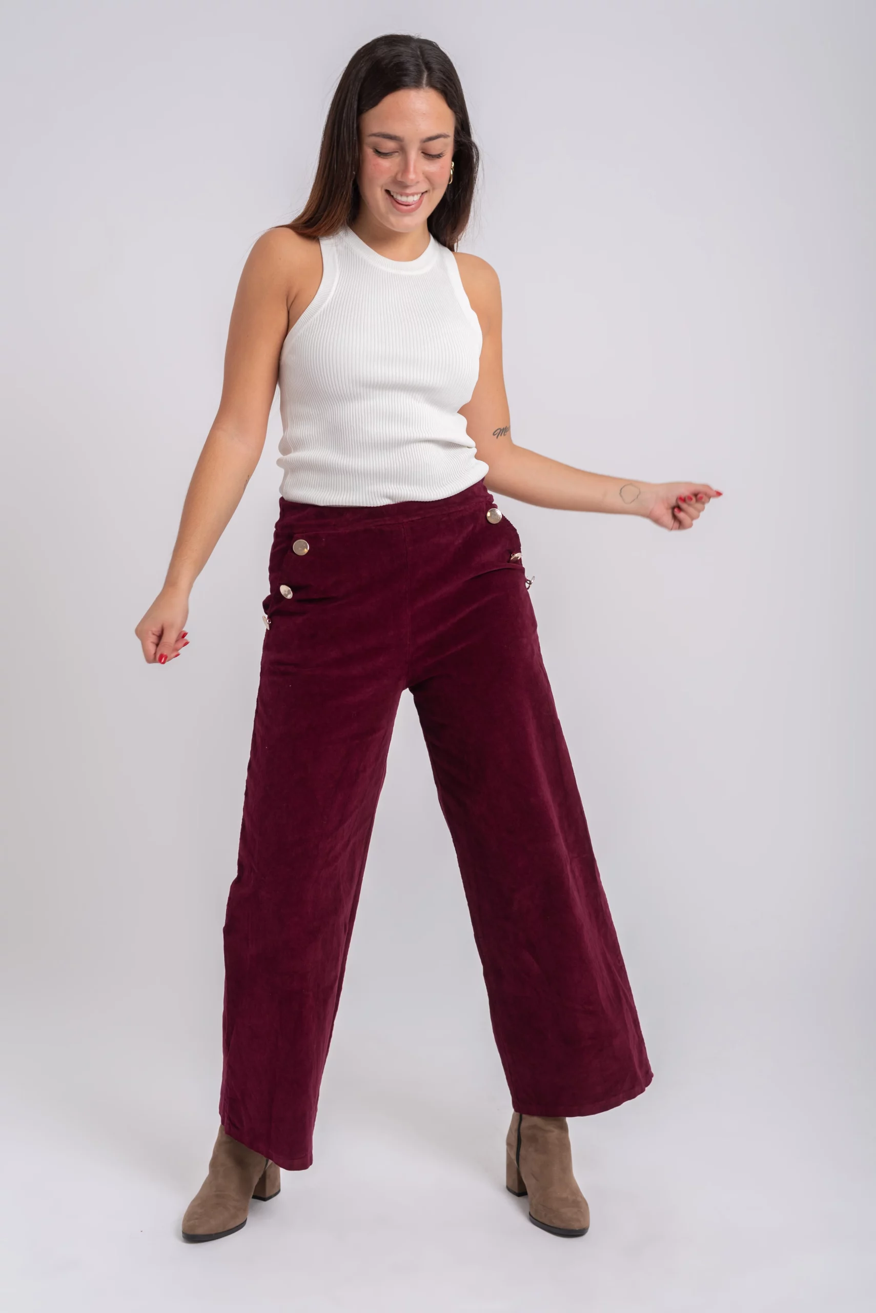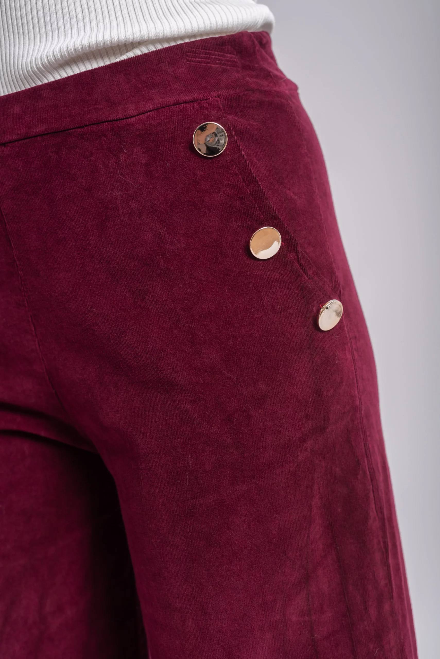 Pantalón culotte de micropana. Goma en cintura. Bolsillos laterales con detalle de botones dorados. Super cómodo y favorecedor.