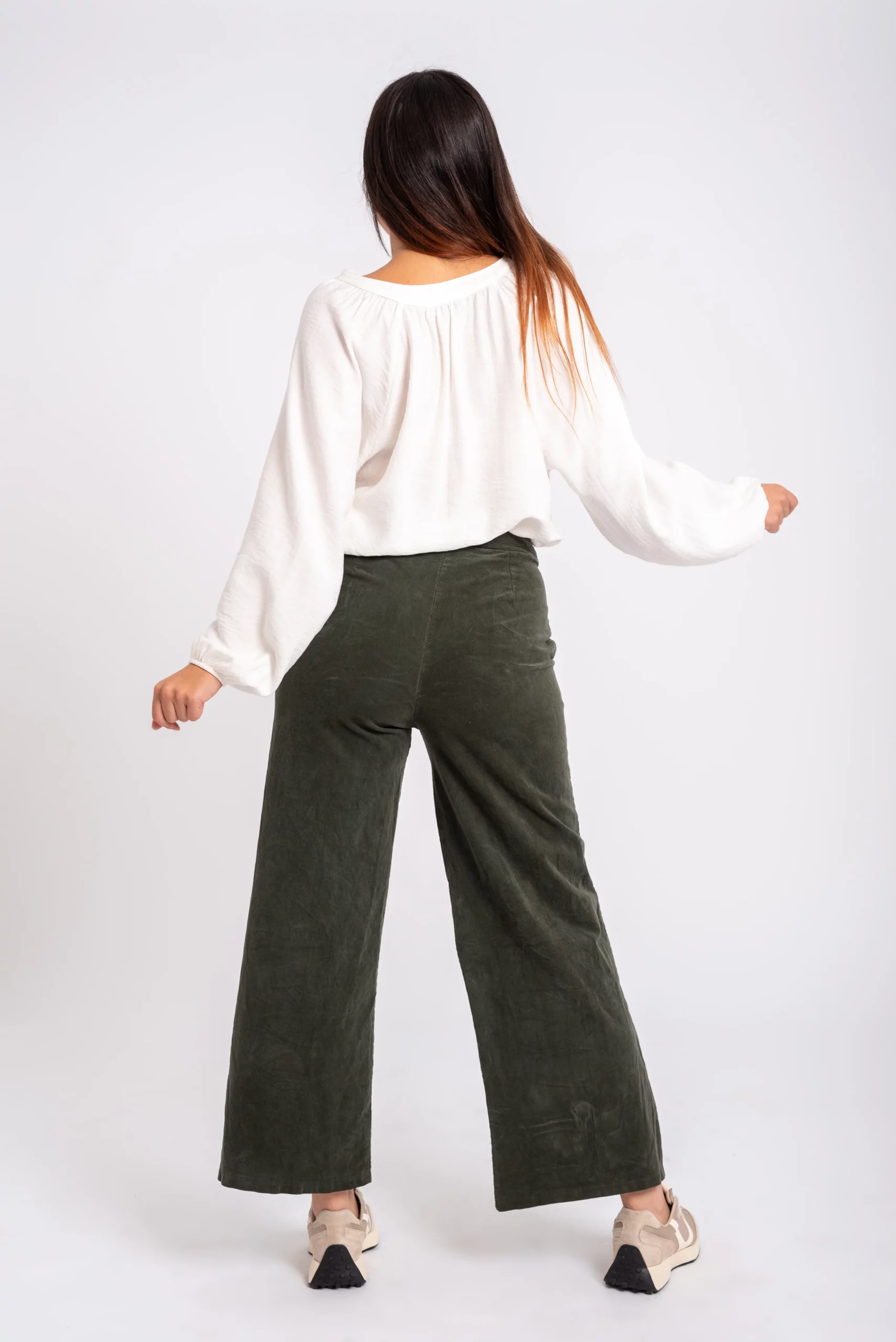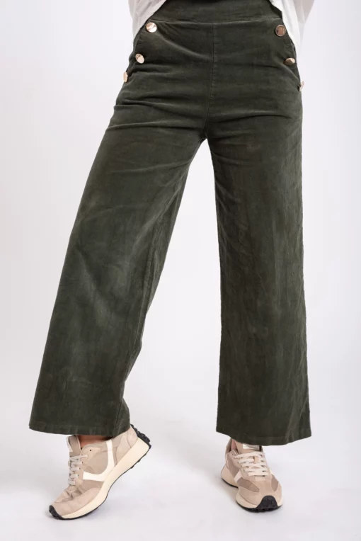 Pantalón culotte de micropana. Goma en cintura. Bolsillos laterales con detalle de botones dorados. Super cómodo y favorecedor.